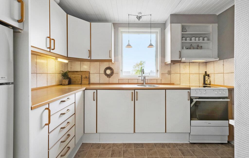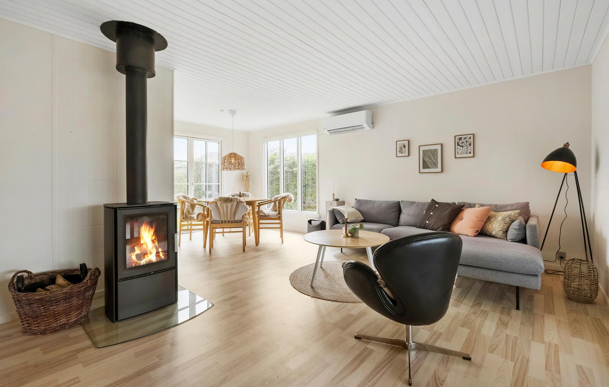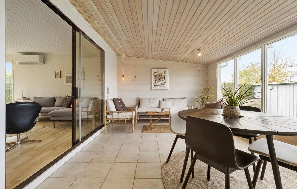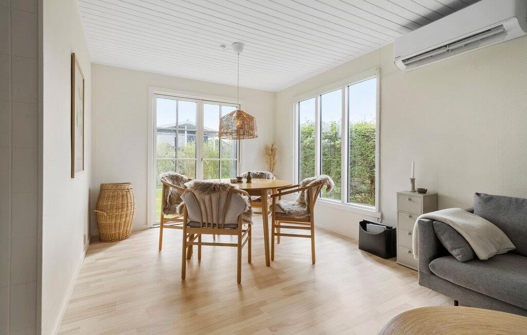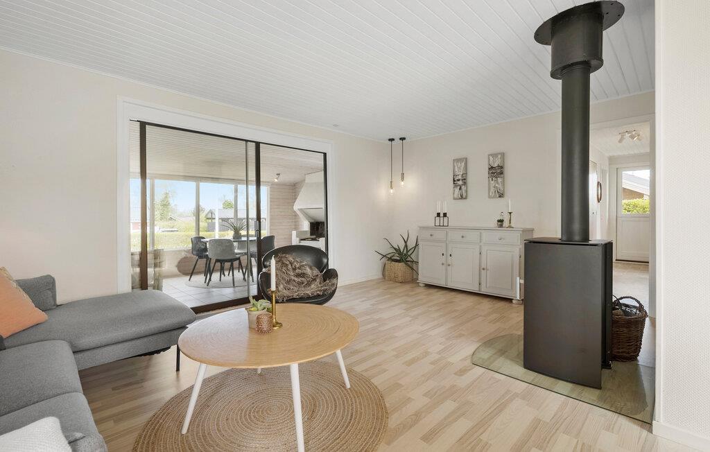 Genießen Sie Ihre Auszeit in diesem gemütlichen Ferienhaus, das Ihnen eine moderne Ausstattung und eine ruhige Umgebung bietet. Die Nähe zum Strand sowie zum Ortszentrum macht es zum idealen Ausgangspunkt für Ihren Urlaub auf Fünen. Im freundlich gestalteten Wohnbereich sorgt der Kaminofen an kühlen Tagen für wohlige Wärme. Nehmen Sie Platz auf dem komfortablen Sofa oder entspannen Sie im hellen Essbereich mit großen Fenstern und Blick ins Grüne. Die stilvolle Einrichtung vereint skandinavische Schlichtheit mit wohnlicher Gemütlichkeit. Nutzen Sie die gut ausgestattete Küche für Ihre Mahlzeiten.