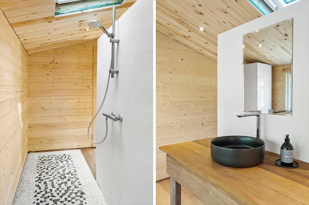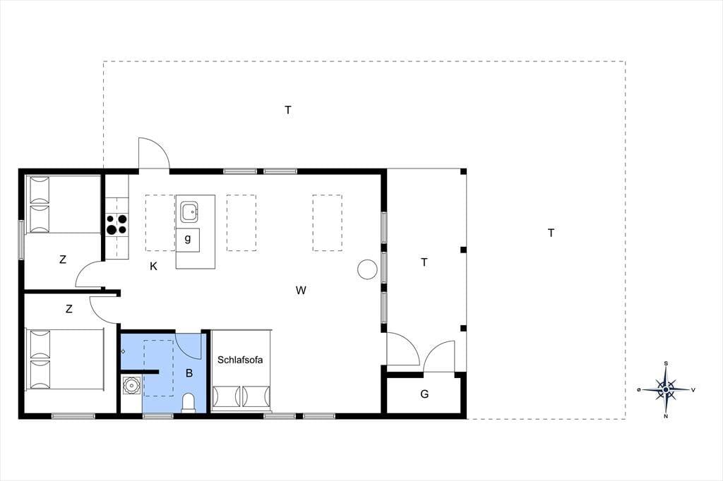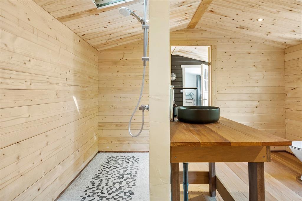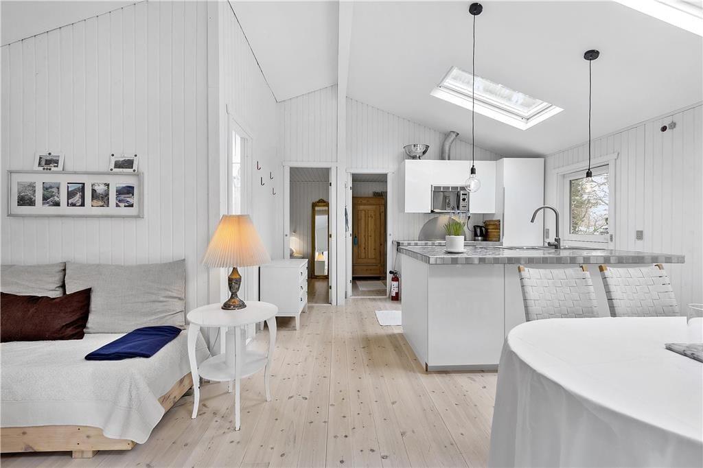 Das Ferienhaus bietet ein helles und offenes Wohn- und Küchenbereich, das eine einladende Atmosphäre schafft. Der Essbereich lädt zu gemütlichen Stunden ein, während die offene Küche es einfach macht, zusammen zu sein, egal ob gekocht oder geredet wird. Die gemütliche Fernsehecke lädt zum Entspannen mit einem guten Film oder Buch ein, nachdem du den Tag mit Erlebnissen gefüllt hast. Große Fenster und die Terrassentür verbinden Innen- und Außenbereich auf schönste Weise und lassen viel Licht in den Raum. Im separaten Gästehaus findest du ein zusätzliches Schlafzimmer sowie ein neues, modernes Badezimmer, das zusätzlichen Komfort bietet.