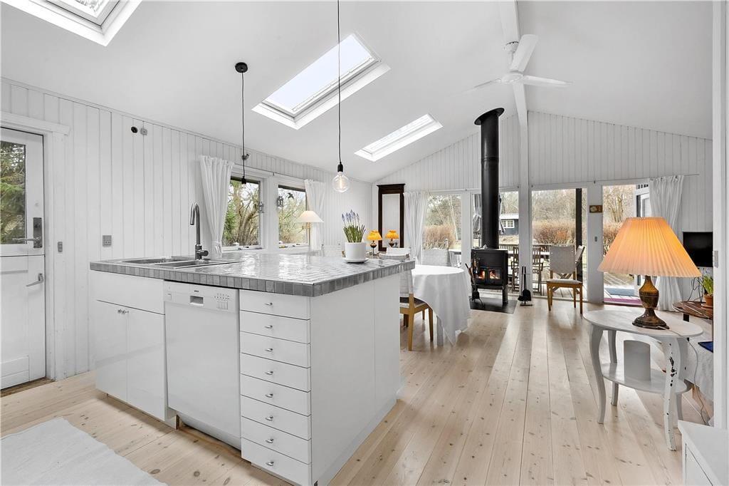 Kikhavn ist eine einzigartige Gegend mit schönen alten Häusern und idyllischen Straßen, die von Pfingstrosen gesäumt sind. Ein kurzer Spaziergang vom Ferienhaus bringt dich zum Strand, wo du ein erfrischendes Bad im klaren Wasser nehmen kannst. In der Gegend gibt es auch einen gemütlichen Hofladen, der Delikatessen verkauft, und etwas weiter entfernt einen Erlebnishof, wo Kinder Kaninchen, Schweine und Pferde treffen können – und vielleicht ein leckeres Eis aus Ziegenmilch probieren. Wenn du eine längere Wanderung unternehmen möchtest, kannst du dem Pfad nach Hundested entlang der Küste folgen, vorbei am Knud Rasmussen Haus und dem Spodsbjerg Leuchtturm. Der Ausblick von hier ist atemberaubend, und an klaren Tagen kannst du sogar Hesselø am Horizont sehen. Kikhavn ist ein friedliches und charmantes Gebiet, das sowohl Ruhe und Entspannung als auch Erlebnisse für die ganze Familie bietet.