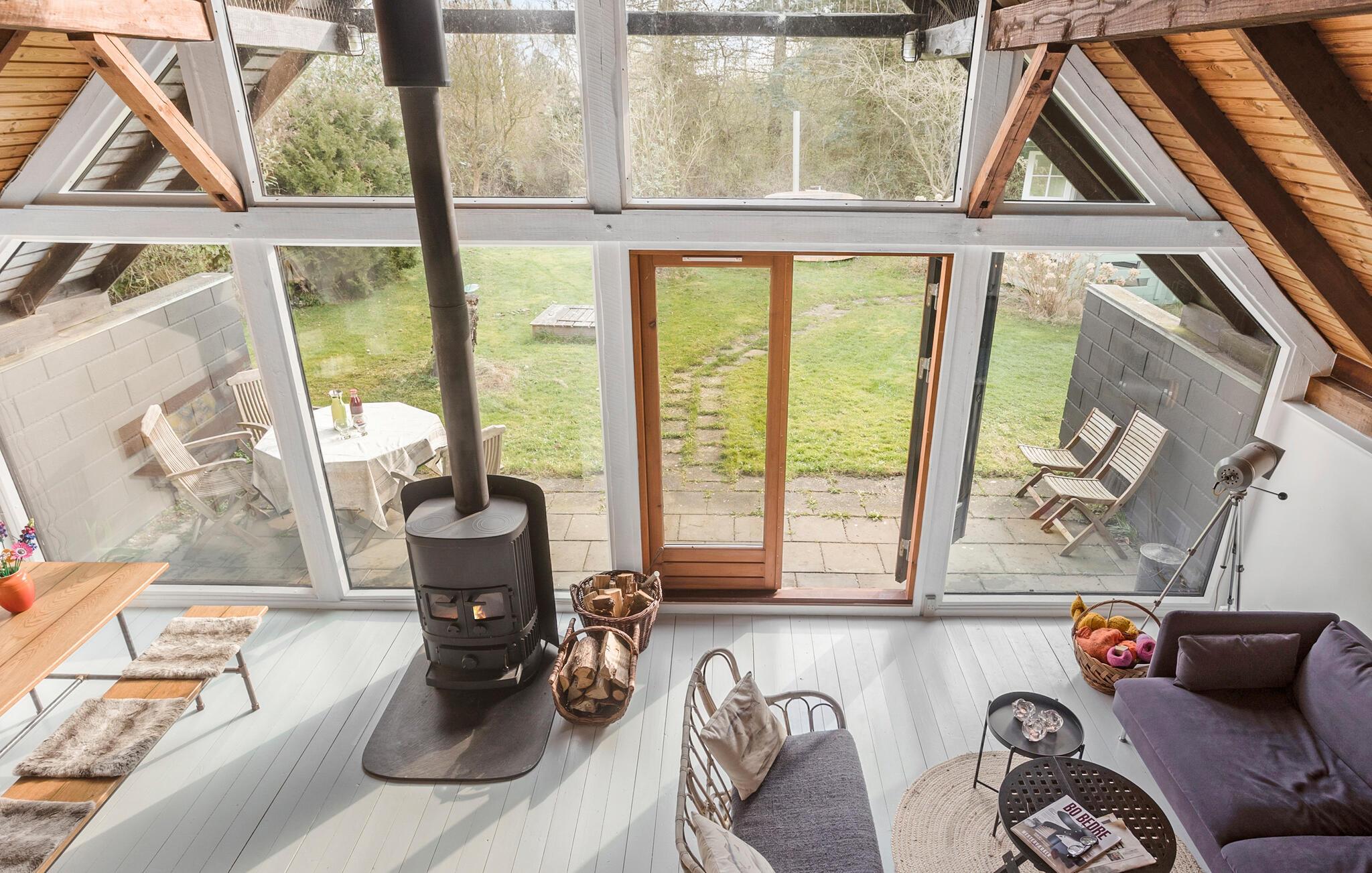 Entfliehen Sie dem Alltag in diesem charmanten Haus, das Entspannung und einen kurzweiligen Urlaub verspricht. Dank seiner großflächigen Fensterfronten sind die Innenräume hell und bieten schöne Ausblicke auf den Garten und von oben auch einen weiten Blick auf die Umgebung. Nehmen Sie nach dem Frühstück und der ersten Tasse Kaffee des Tages, die Sie in der offenen Küche zubereiten können, Platz in der Sitzgruppe und planen Sie Ihren Urlaubstag. Das Wohnzimmer mit einem einladenden Kaminofen verspricht wohlige Wärme an kühleren Tagen. Die behagliche Einrichtung schafft einen Raum, in dem Sie sich gleich wohl fühlen.