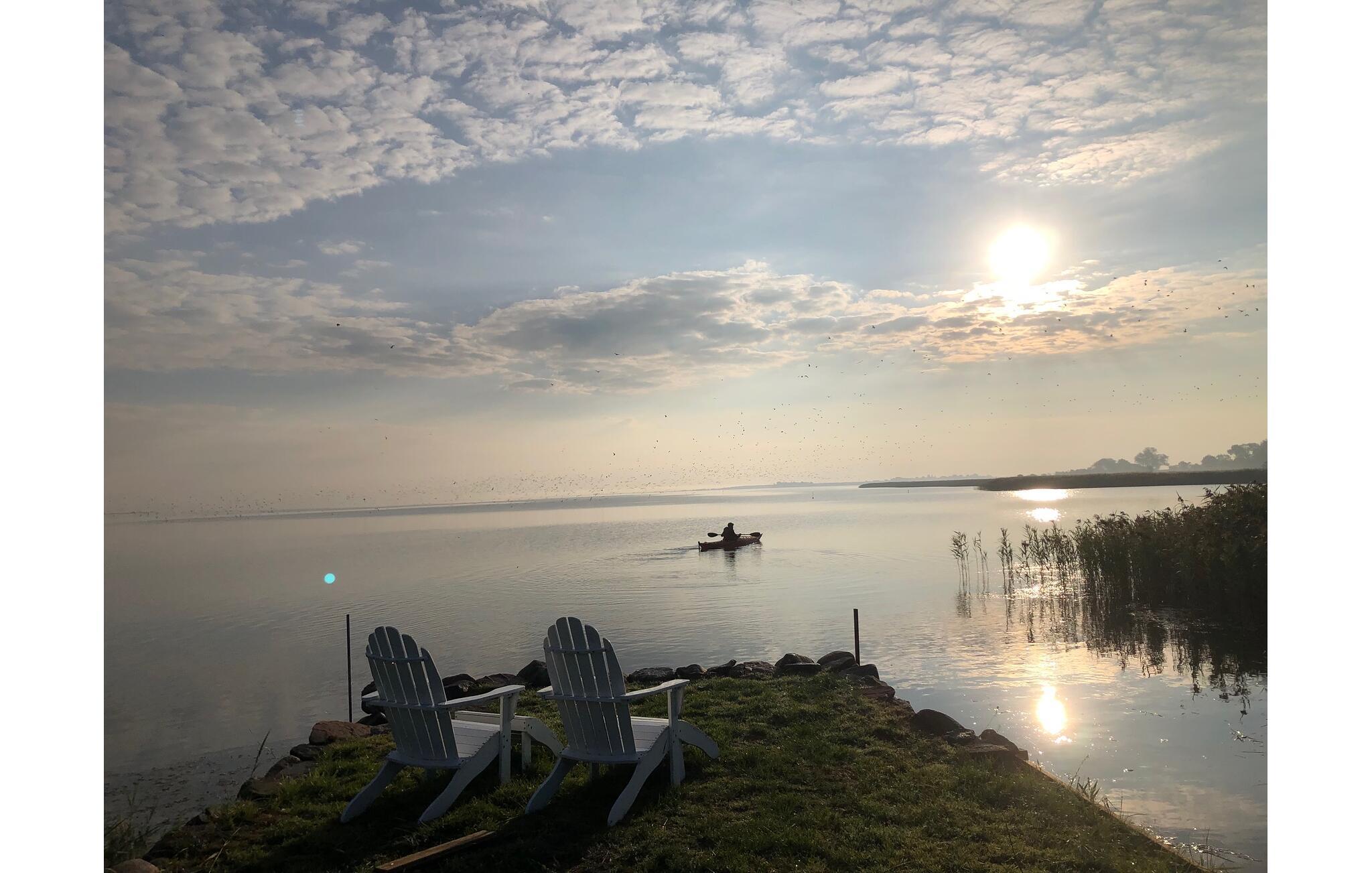 Die beiden Terrassen mit komfortablen Gartenmöbeln und mit 4 bequemen Sonnenliegen lädt dazu ein, zahlreiche angenehme Stunden im Freien zu verbringen. Genießen Sie hier draußen die Ruhe und die Sonne. Von der Terrasse wie aus dem Wohnzimmer genießen Sie ein 180-Grad-Panorama auf die Bucht von Stege.