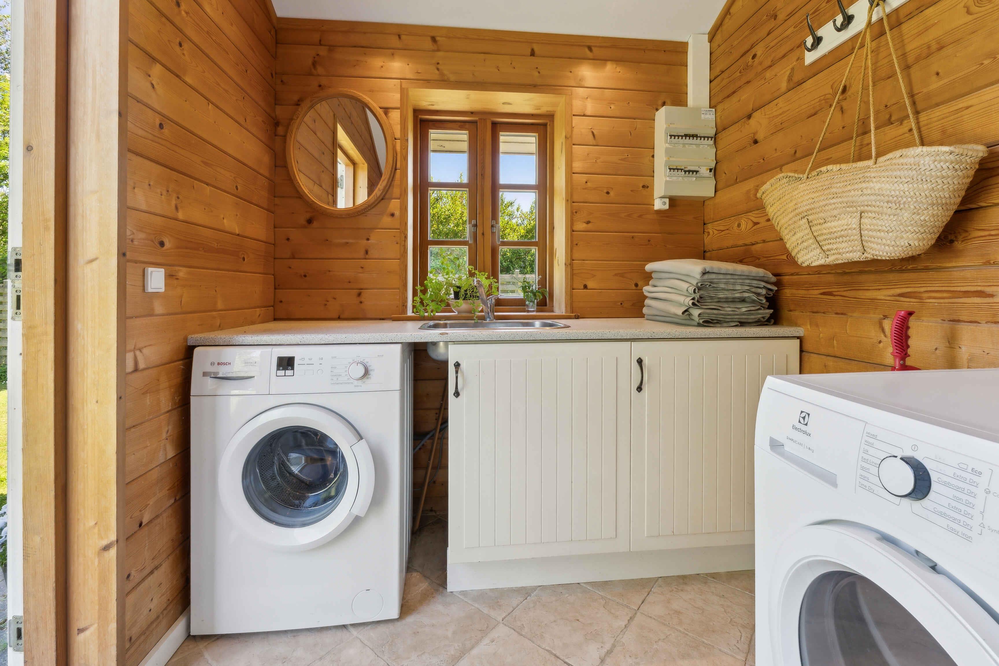 Schönes Ferienhaus mit 90m² und Dachboden in ruhiger Lage, nahe dem Fjord und einem schönen Gemeinschaftsbereich mit Badesteg im Sommer. Es gibt keinen Wasserblick vom Haus. Alles ist im Preis inbegriffen, wie Wasser, Handtücher, Bettwäsche, Geschirrtücher und Grundnahrungsmittel wie Öl, Zucker und Gewürze. Der Holzofen ist die Hauptquelle der Heizung, es gibt Elektroheizung im Badezimmer und etwas Fußbodenheizung, die eingeschaltet wird, wenn der Strom günstiger ist. Der Garten ist völlig privat mit Platz für Spiele, Sport und Spaß. Das Haus Großes Wohnzimmer/Gemeinschaftsraum mit hohen Decken, 4-5 Meter. Gut isolierte rustikale finnische Blockhütte mit angenehmem Raumklima. Schlafplätze in den beiden Schlafzimmern, im Wohnzimmer und auf dem Dachboden. Das Haus ist gut isoliert, und der Holzofen hat eine gute Kapazität, sodass es das ganze Jahr über angenehm ist. Es gibt WLAN und ein Chromecast-TV für Streaming von Ihrem eigenen Gerät. Es gibt auch ein Tablet mit Apps, um unter anderem DR, TV2 und deutsche Sender zu sehen sowie Filme und Serien zu streamen. Gastzugang Zugang zum gesamten Gebäude. Es gibt eine Leiter zum Dachboden. Parken auf dem großen Parkplatz (3-4 Autos).