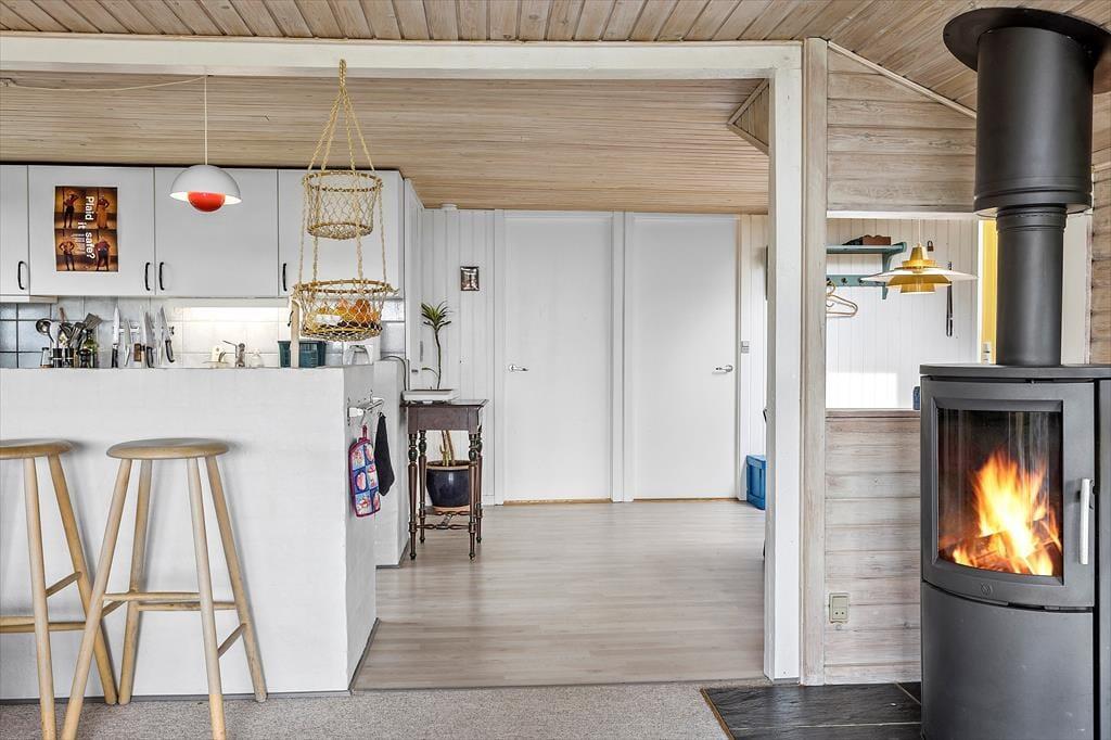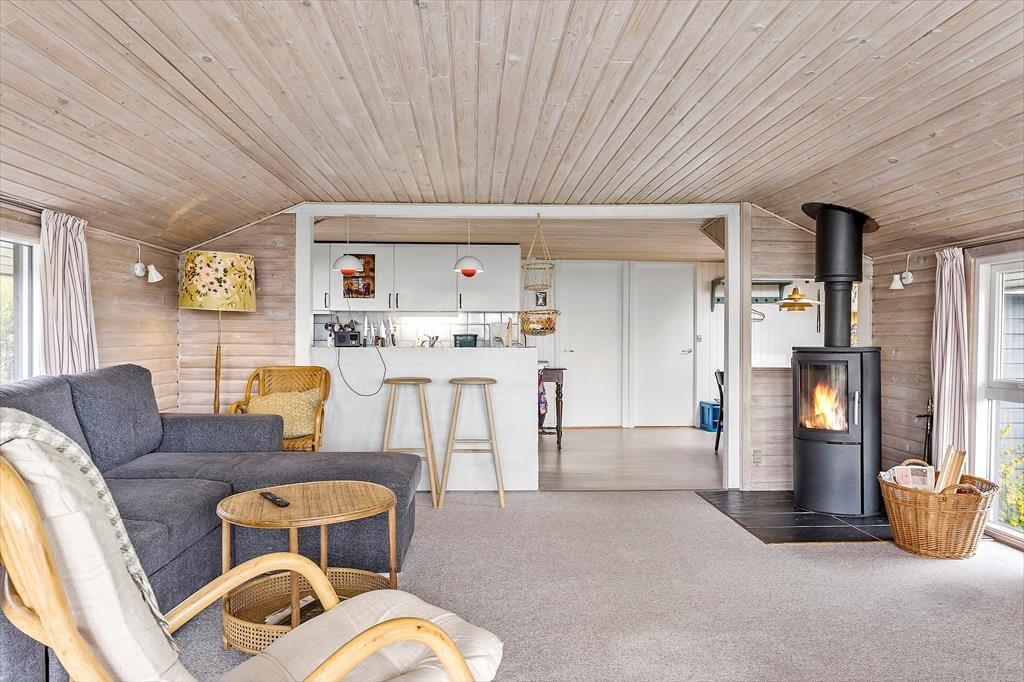Das blau gestrichene Holzferienhaus zählt zu den Exemplaren, in denen man sich vom ersten Moment an heimisch und wohl fühlt. Der Eigentümer hat bei der Inneneinrichtung großen Wert darauf gelegt, eine gemütliche Stimmung zu schaffen und diese mit angenehm viel Komfort zu kombinieren. Zu den prägenden Elementen zählen der behaglich knisternde Kaminofen und der reizvolle Fjordblick. Viele gemeinsame Stunden wirst du mit deinen Lieben im Aufenthaltsraum verleben, der den Wohnraum und die Küche offen in sich vereint. Die drei Schlafräume bieten insgesamt vier Schlafplätze für Erwachsene und einen Schlafplätz für ein Kind. Nachdem du nach einer erholsamen Nacht aufgewacht bist, startest du mit einem erfrischenden Duschbad im Badezimmer in den neuen Urlaubstag.