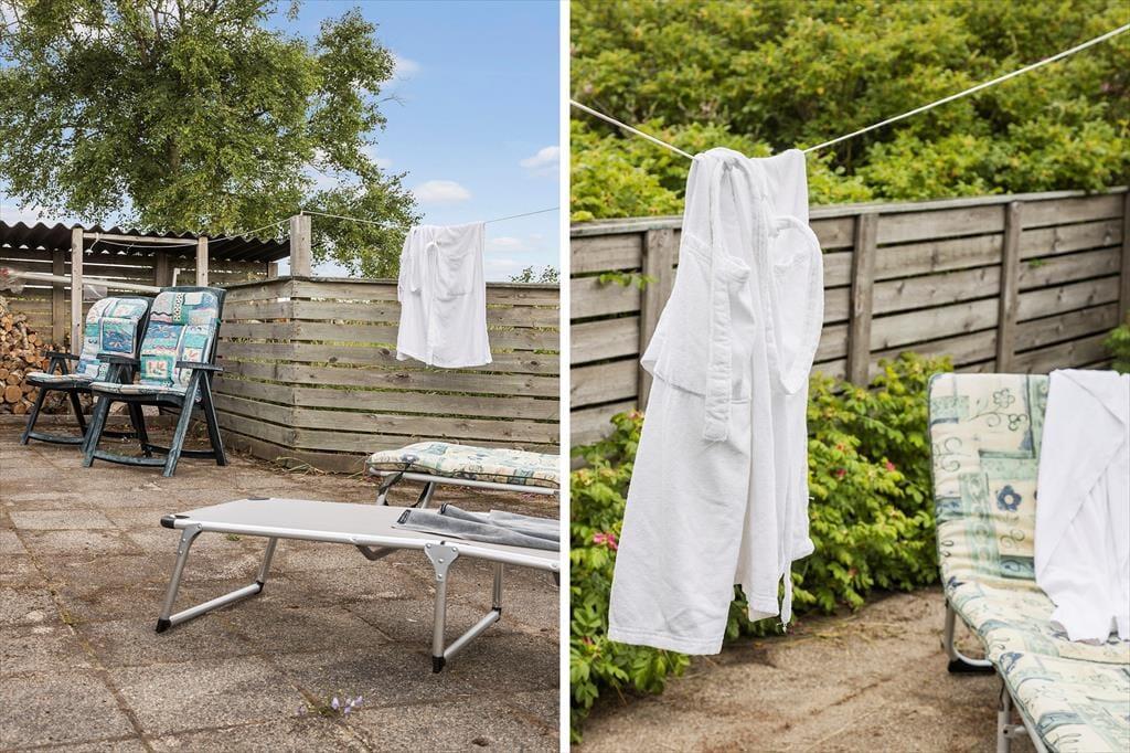 Draußen erwartet dich ein herrliches Naturgrundstück, von dem ein großer Teil als Rasen angelegt ist – ideal für Ballspiele, Spiel und gemütliche Aktivitäten im Freien. Hier gibt es viel Platz, um sich auszubreiten, frische Luft zu schnappen und einfach den Moment zu genießen. Die Terrassenbereiche des Ferienhauses geben dir die Möglichkeit, der Sonne den ganzen Tag zu folgen, und im schönen Sonnenhof kannst du windgeschützt sitzen und die warmen Strahlen genießen, während sich der Duft von Heide und Meeresbrise in der Luft mischt. Vielleicht beginnt der Tag mit einem Frühstück unter freiem Himmel mit Blick auf die offene Landschaft und endet mit einem Grillabend, bei dem das Licht langsam weicher wird und Ruhe einkehrt. Die Kinder können frei auf dem Rasen spielen, während die Erwachsenen ein Glas Wein oder ein gutes Gespräch genießen.