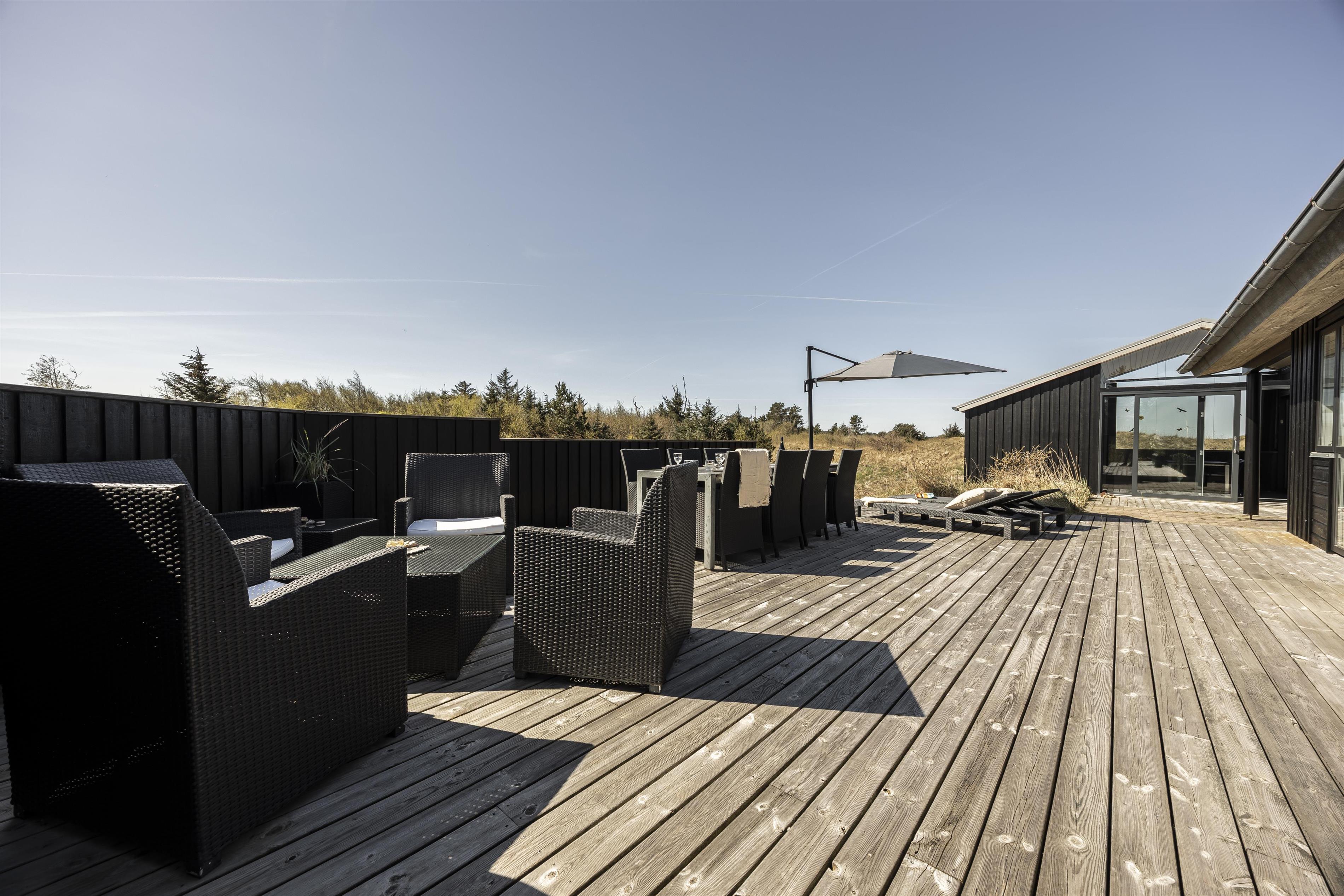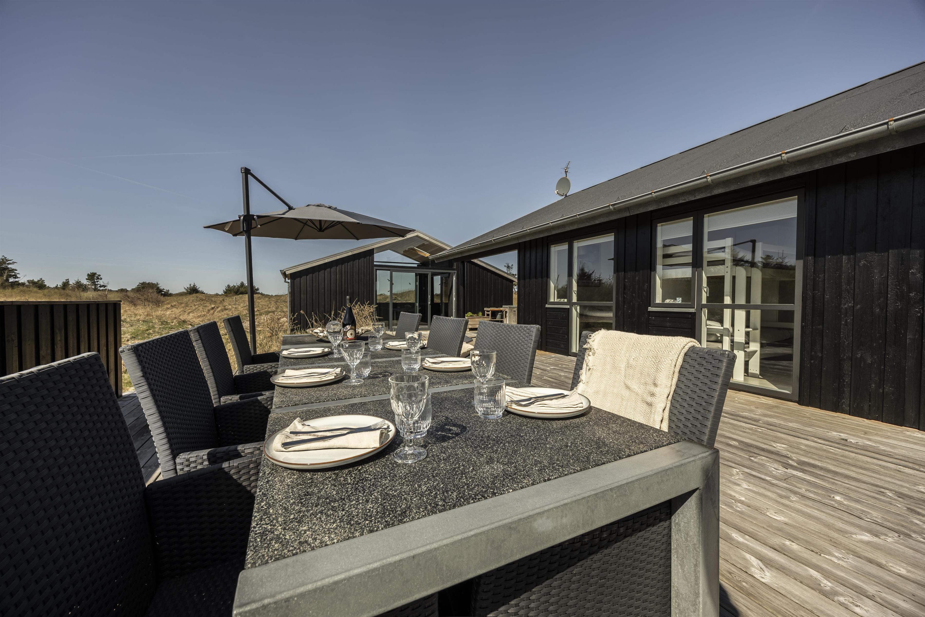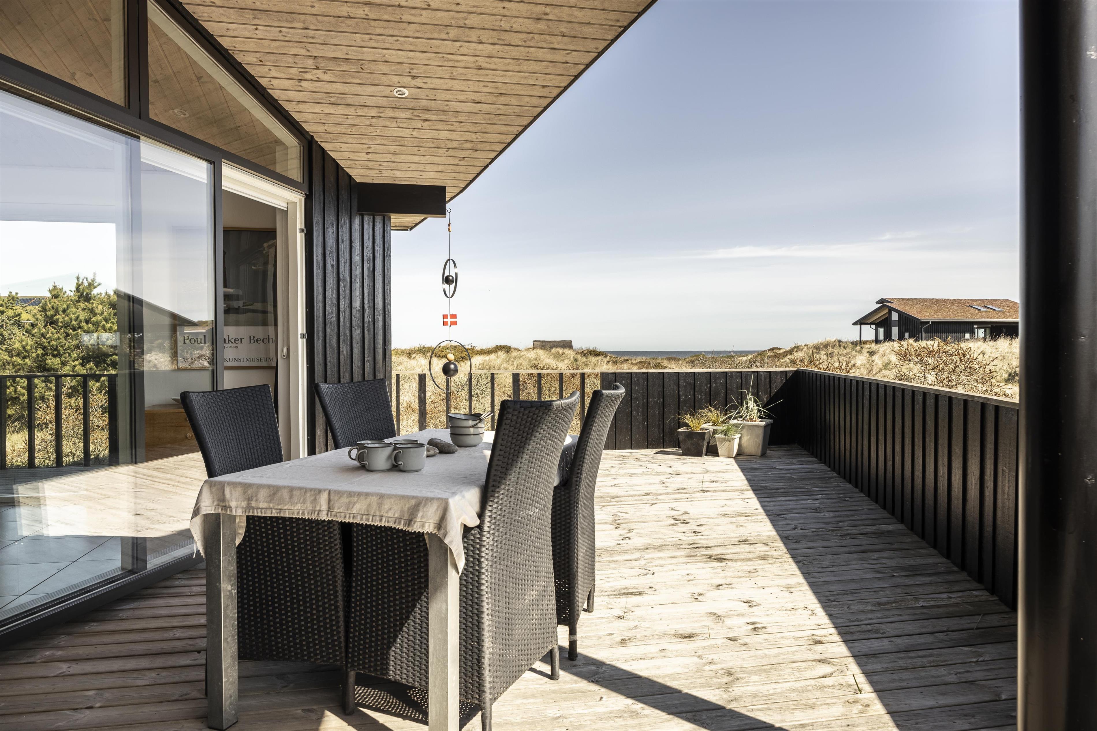 Träumen Sie von einem Ferienhaus von hoher Qualität, Frieden und Ruhe sowie dem schönsten Meerblick während Ihres nächsten Urlaubs? Dann ist dieses wunderschöne Ferienhaus die perfekte Wahl. Hier finden Sie alles, was Sie für einen besonders erfolgreichen Urlaub benötigen. Das Haus liegt in einer schönen Naturlandschaft in Kjul – hier ist es ruhig, und von überall haben Sie einen fantastischen Blick auf die tosende Nordsee und die hügelige Dünenlandschaft. Hier haben Sie viel Himmel und eine herrliche, entspannende Atmosphäre.