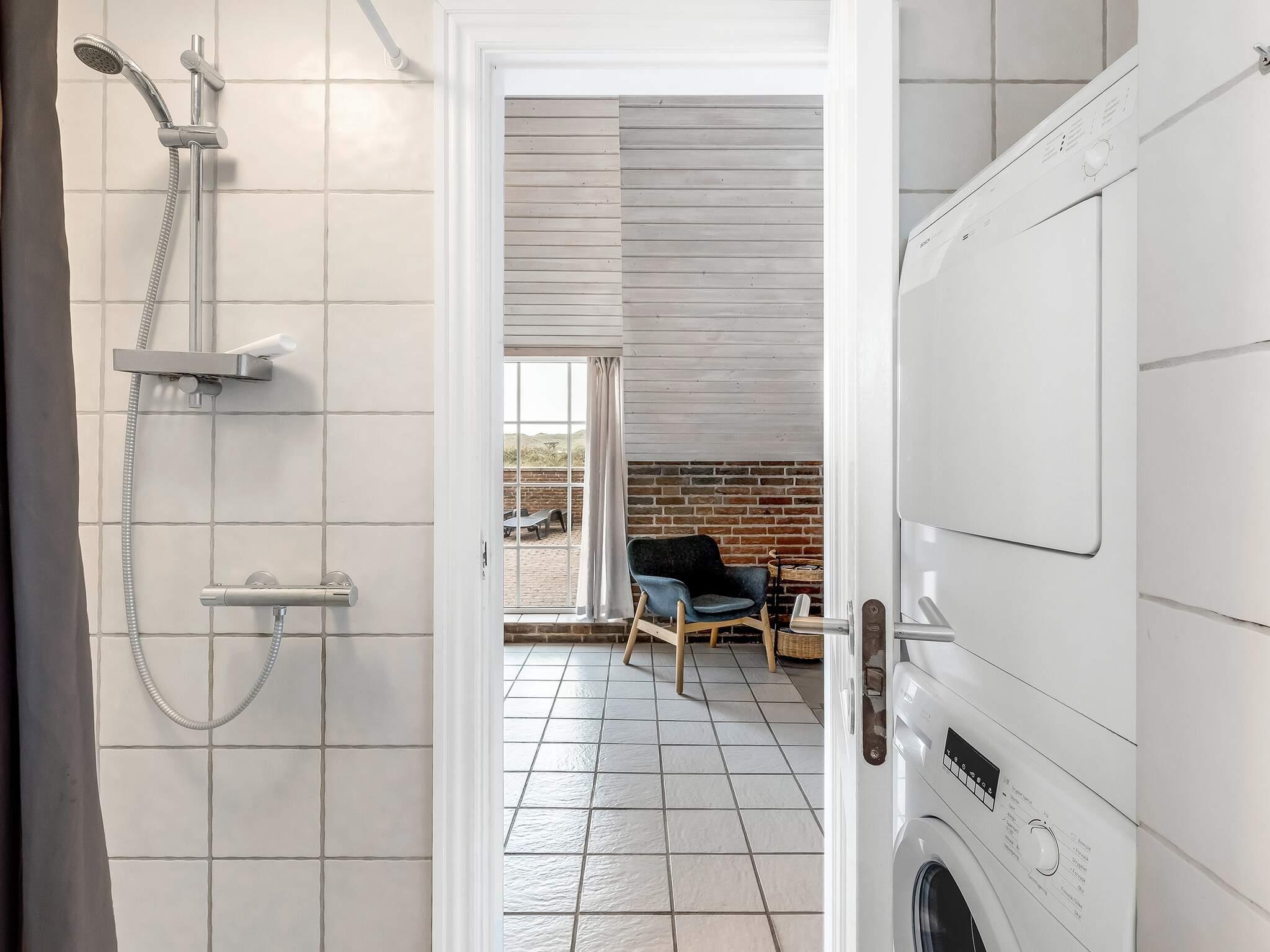 Der Pool des Hauses ist ganze 20 m2 groß. Vorne am Fenster steht zudem ein Whirlpool mit Ausblick zu den Dünen bereit. An kühleren Tagen kann man auch die Wärme in der Sauna genießen.