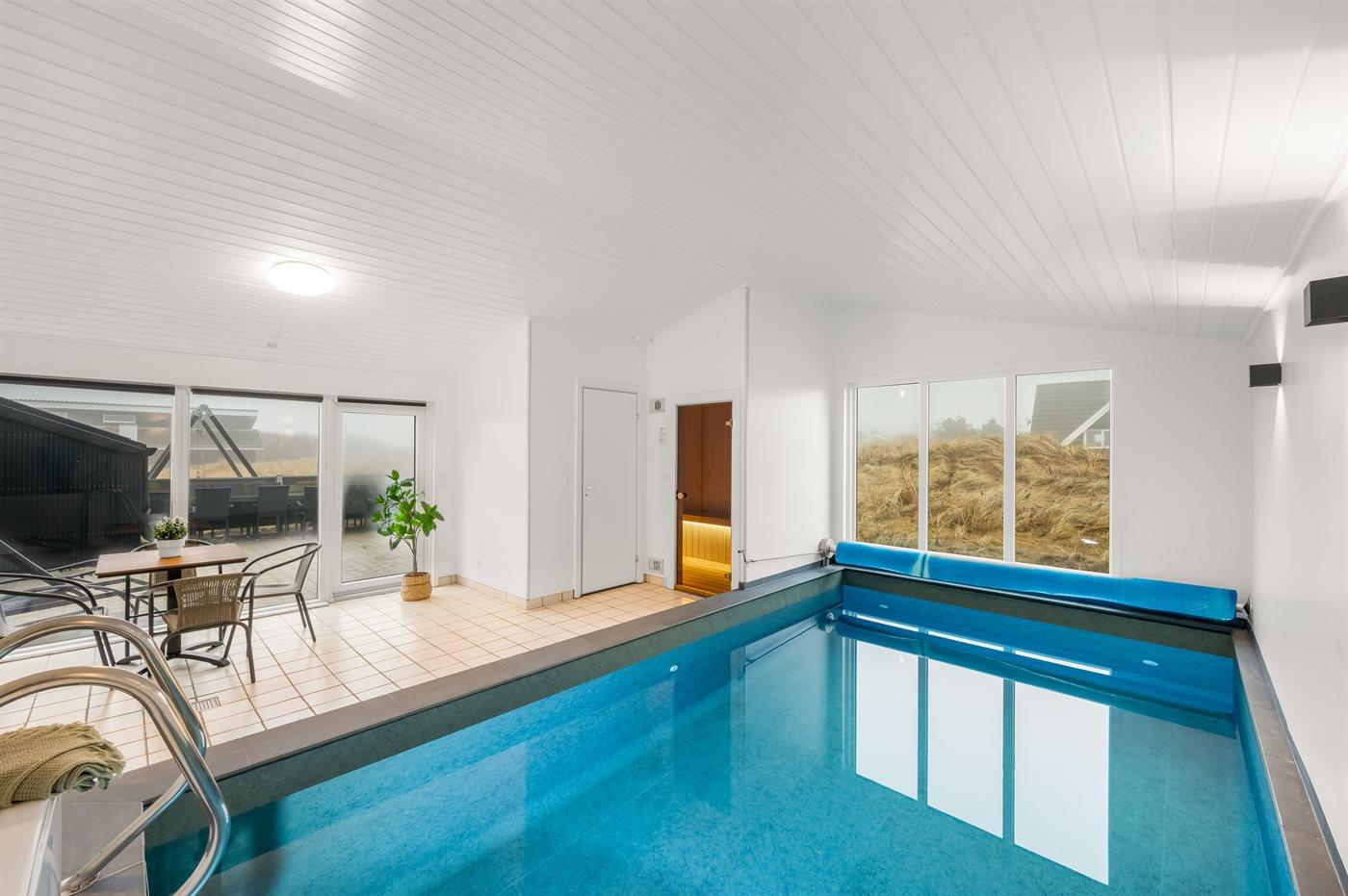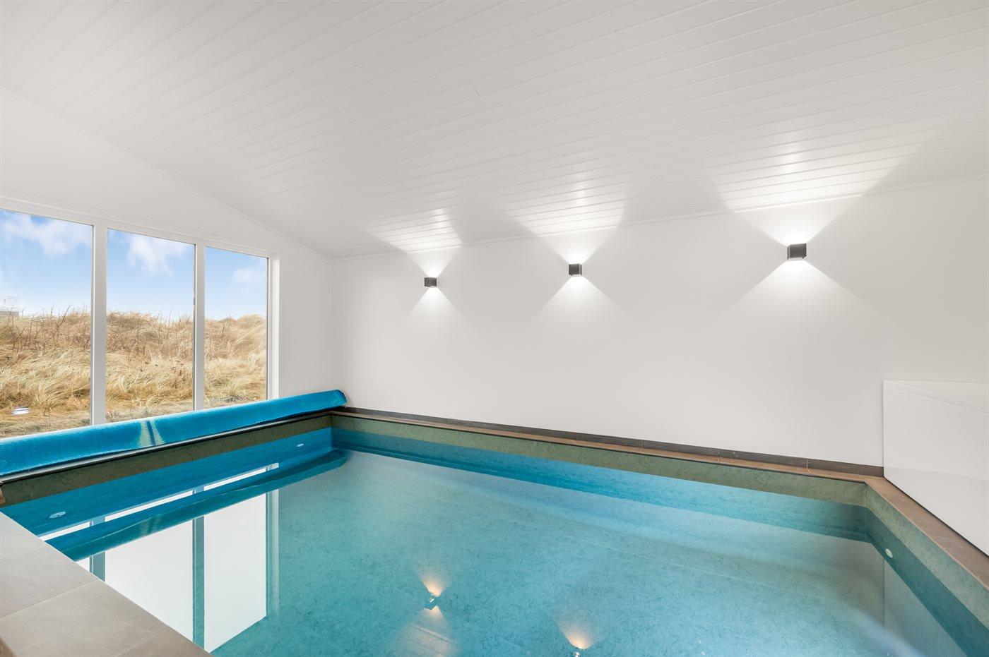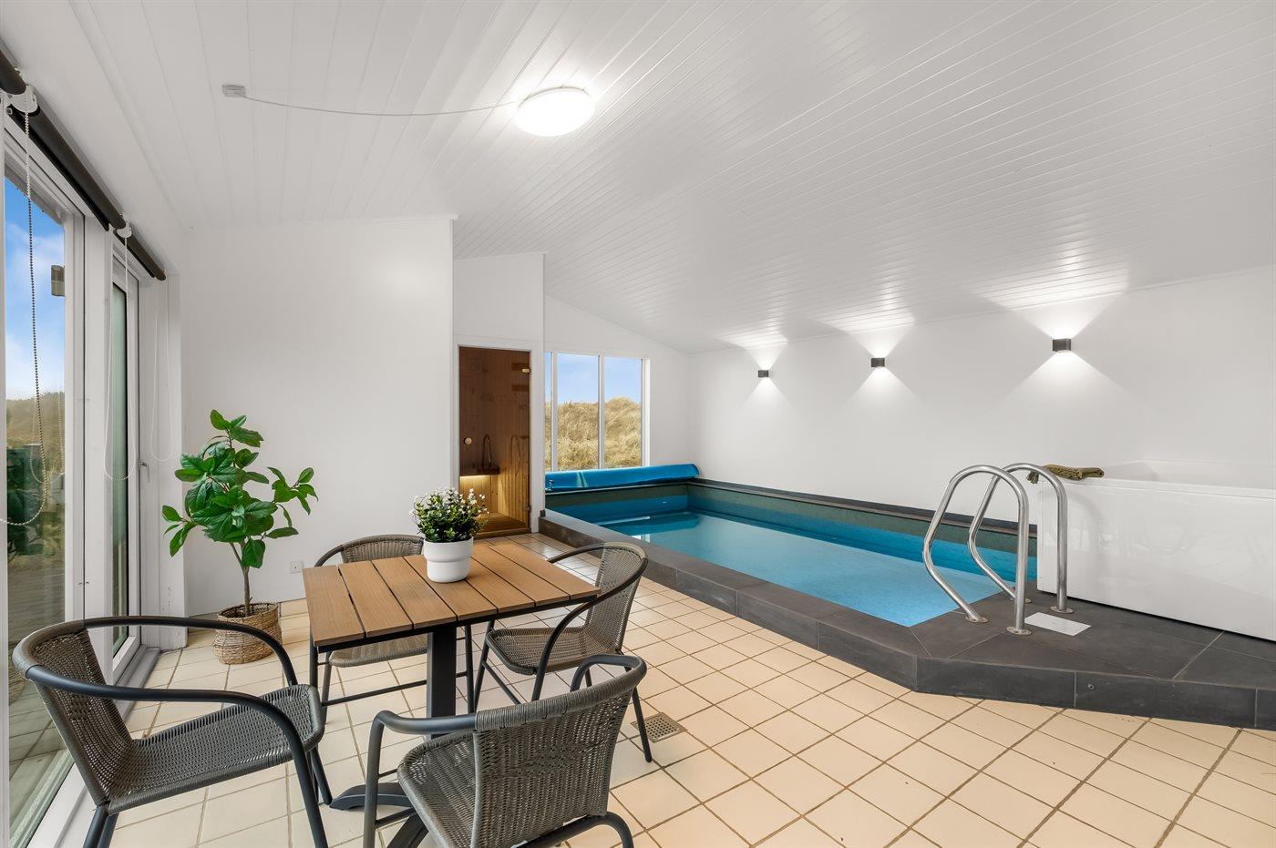 Exklusives Ferienhaus mit Pool, Sauna und Whirlpool in Ringkøbing, Dänemark, ideal für große Gruppen.