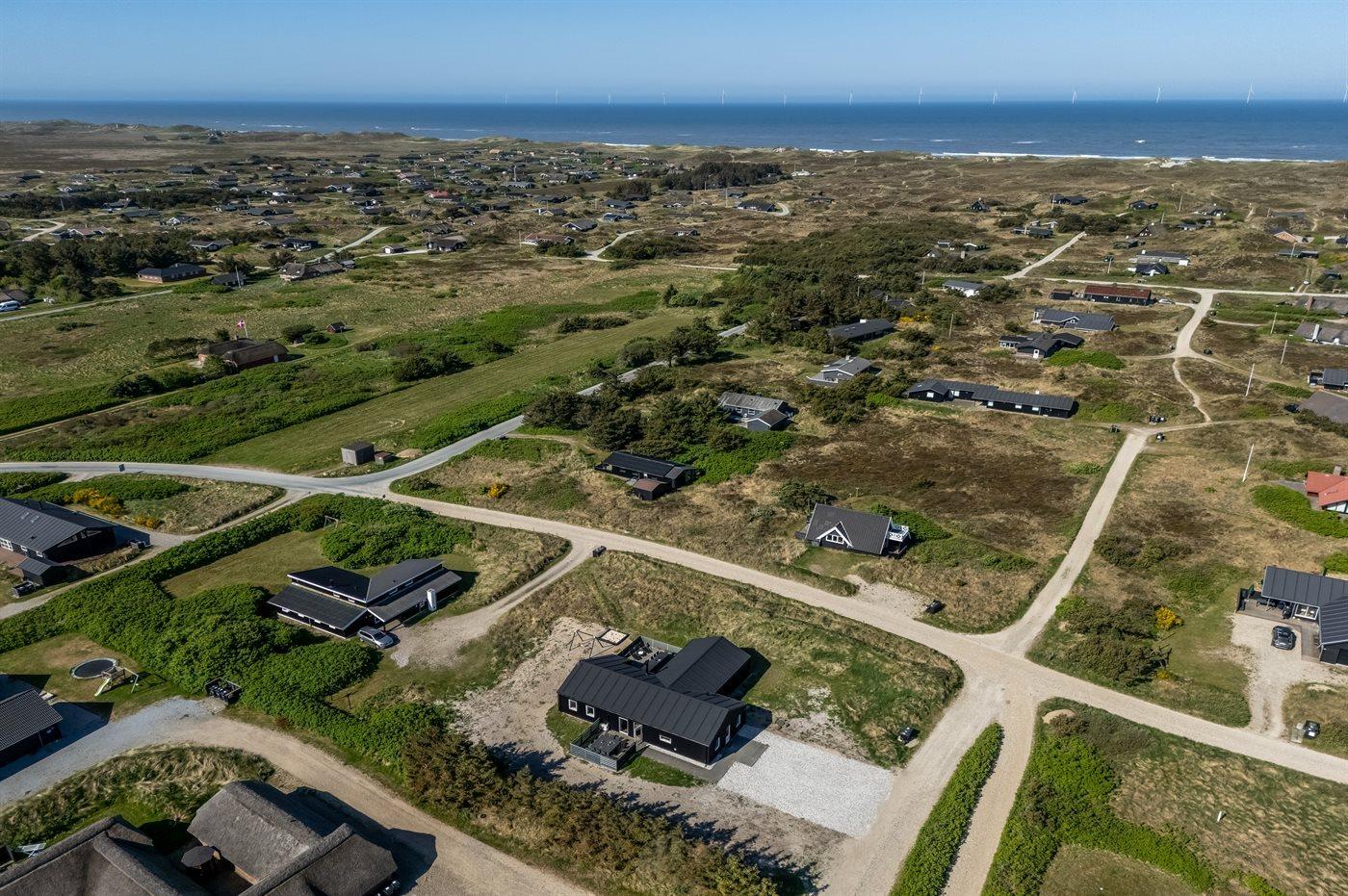 Die Ferienunterkunft liegt auf einem 2000 m² großen Naturgrundstück. Die Entfernung zum Meer beträgt 900 m. Die nächste Einkaufsmöglichkeit liegt 3500 m entfernt. In einem Abstand von 5000 m gibt es einen Golfplatz. Es steht ein offenes Terrassenareal zur Verfügung. Geräteraum. Schaukel. Sandkasten. Es steht ein Grill zur Verfügung. Es ist ein Ladestecker für Elektroautos installiert. Mit einer Ladeleistung von 11 kW. Parkplatz auf dem Grundstück.