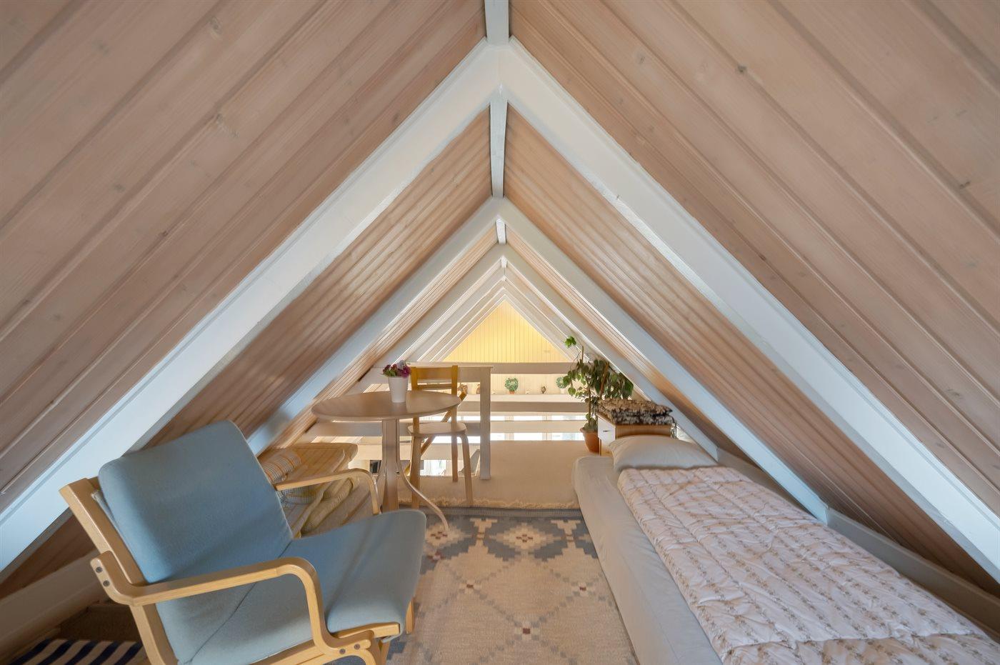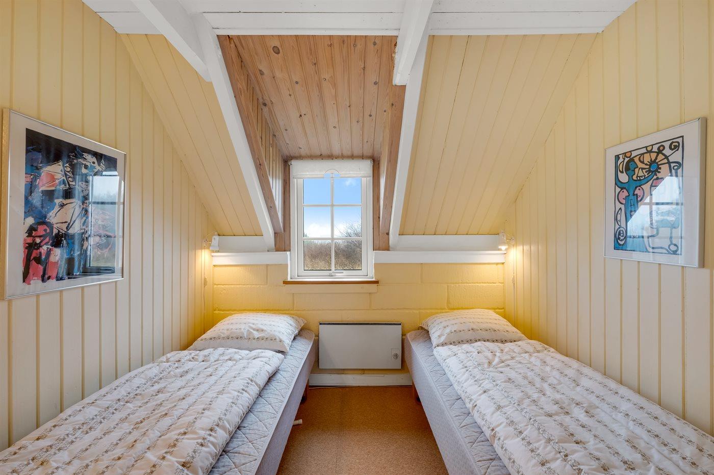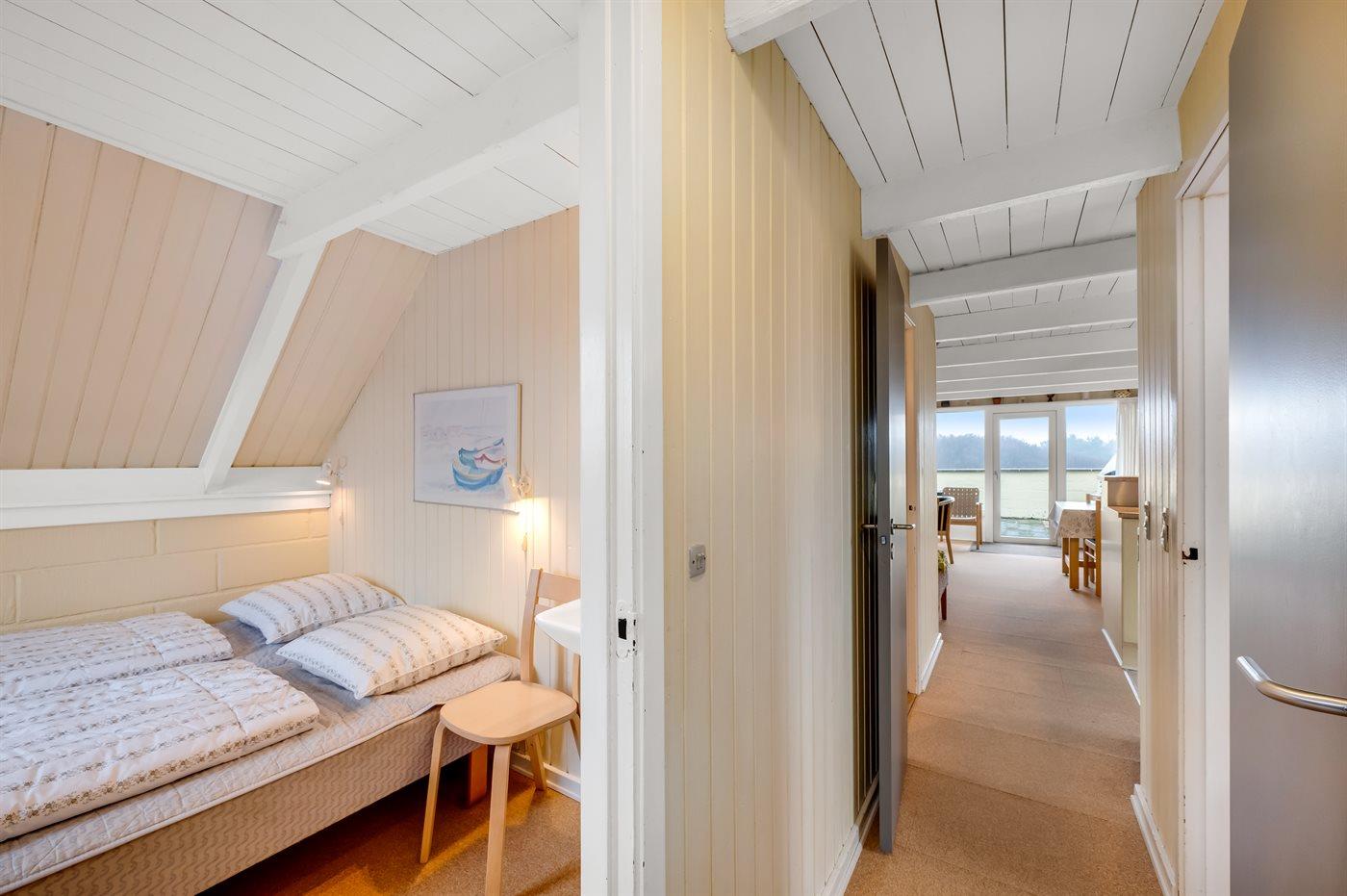 Die Schlafplätze verteilen sich auf 2 Schlafräume. 2 Schlafplätze in einem Doppelbett. 4 Schlafplätze in Einzelbetten. 2 von diesen Schlafplätzen befinden sich im offenen Obergeschoss.