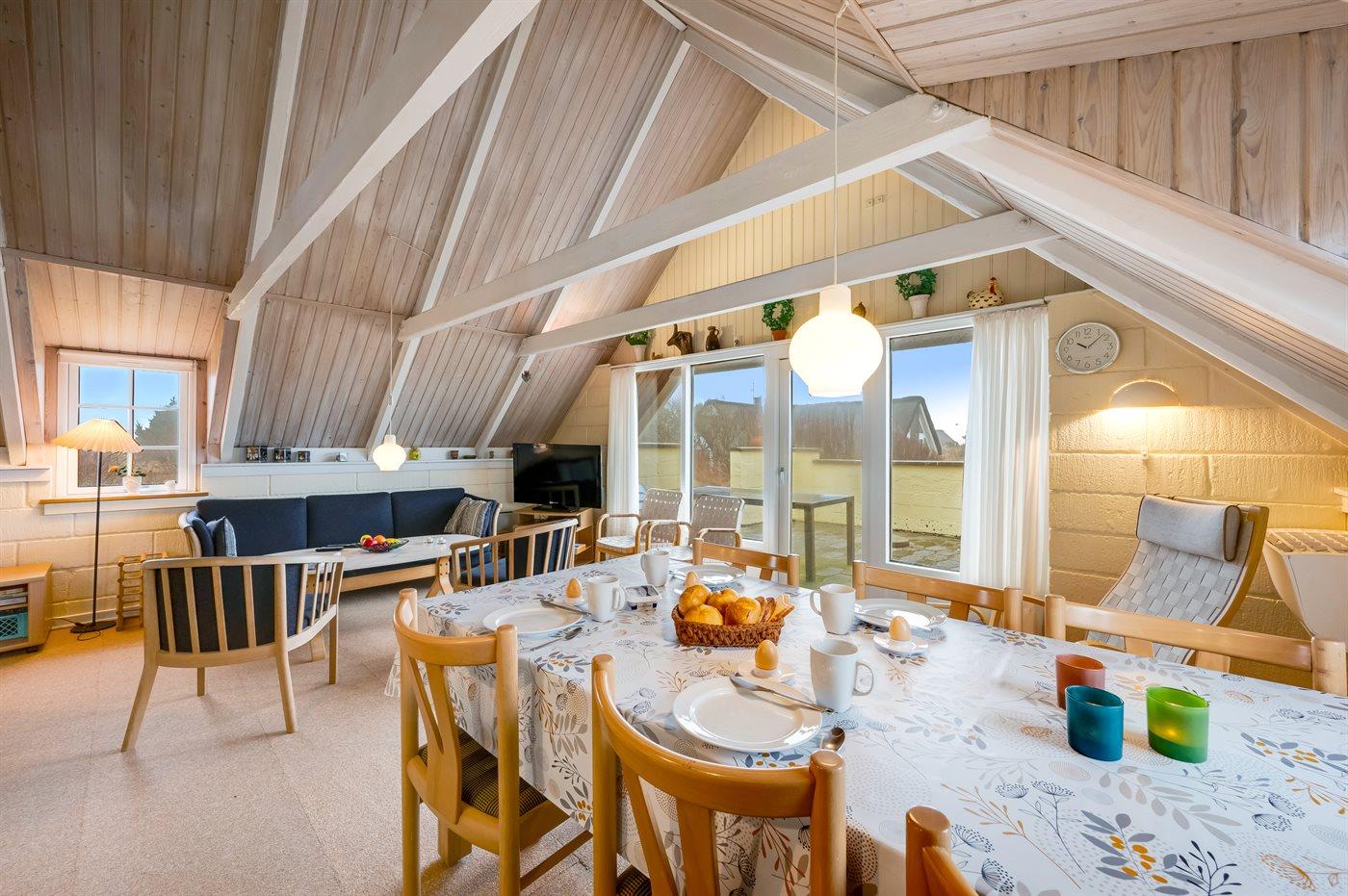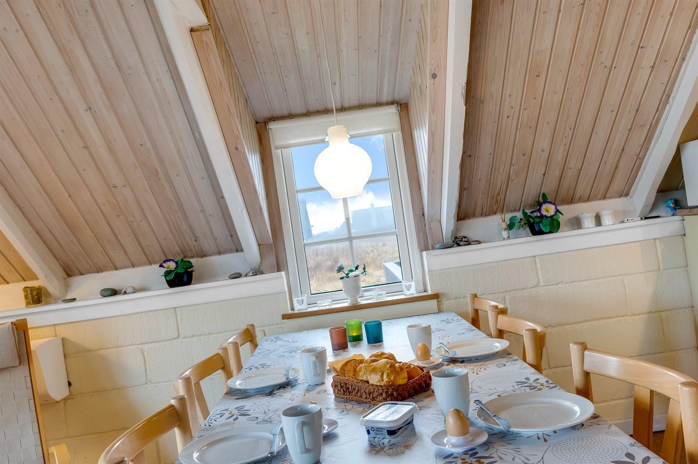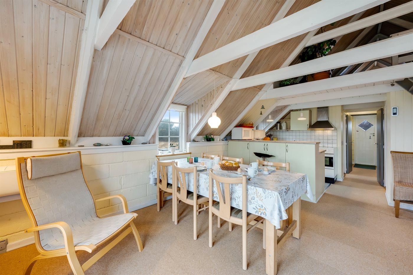 Ein Ferienhaus mit Reetdach und Sauna, auf einem ca. 2.200 m² großen Dünengrundstück bei Klegod gelegen, nur etwa 900 Meter von der Nordsee entfernt. Vom Wohnzimmer hast du direkten Zugang zu einer nach Süden ausgerichteten, teilweise überdachten Terrasse. Außerdem gibt es eine nach Westen ausgerichtete, abgeschirmte Terrasse sowie eine große, geschlossene Terrasse am nördlichen Ende des Hauses.