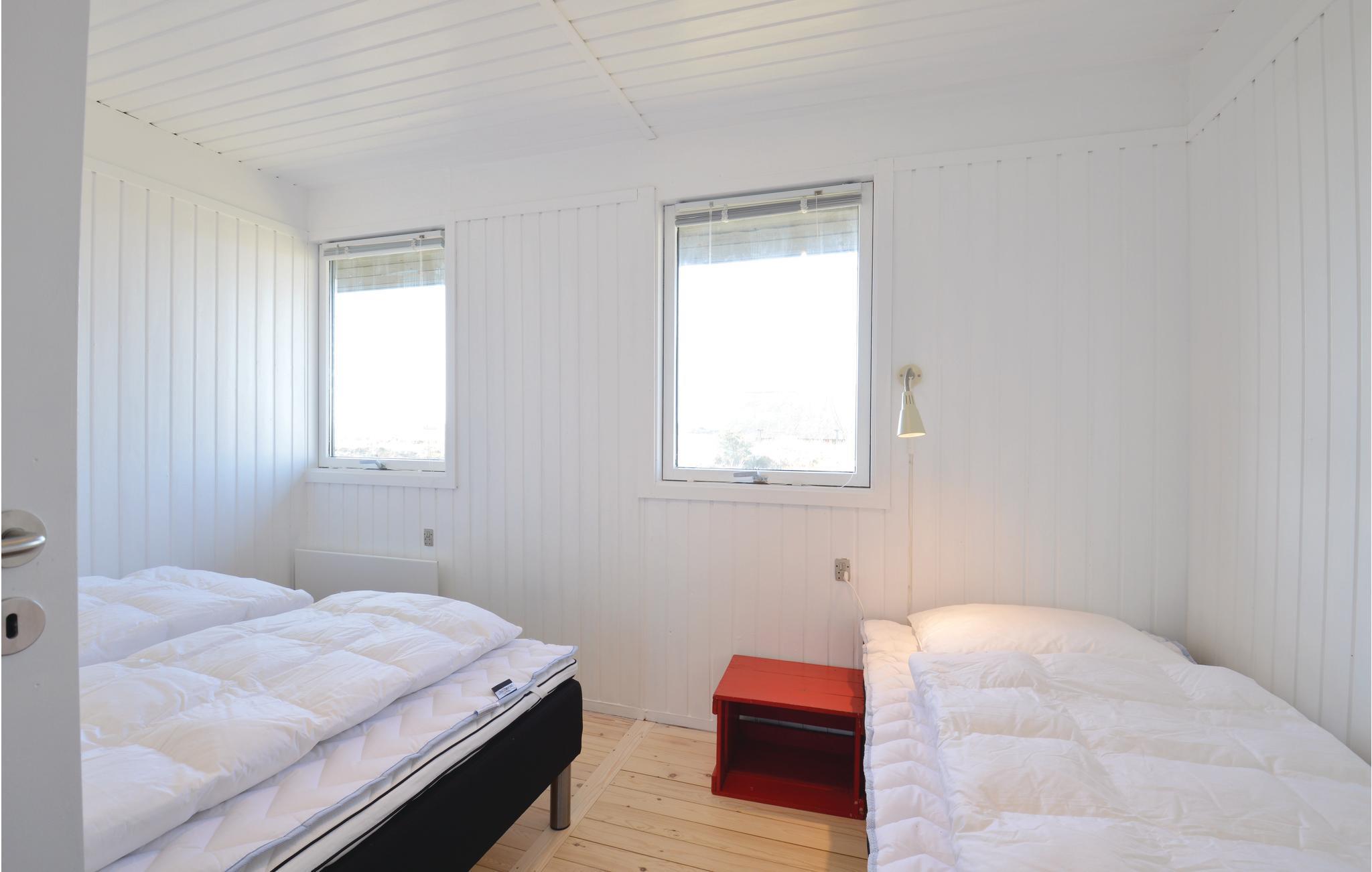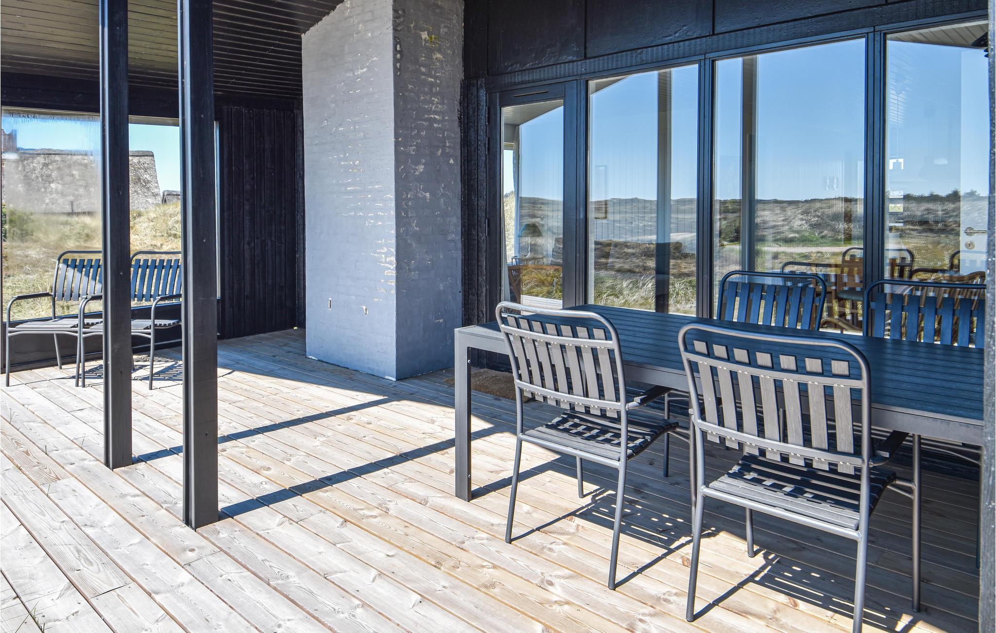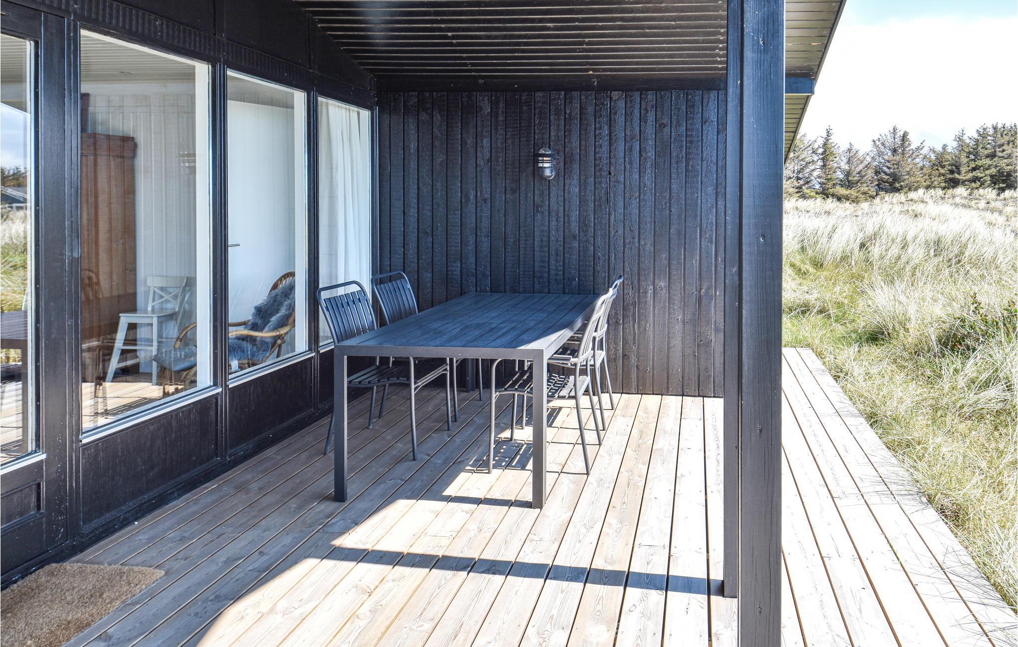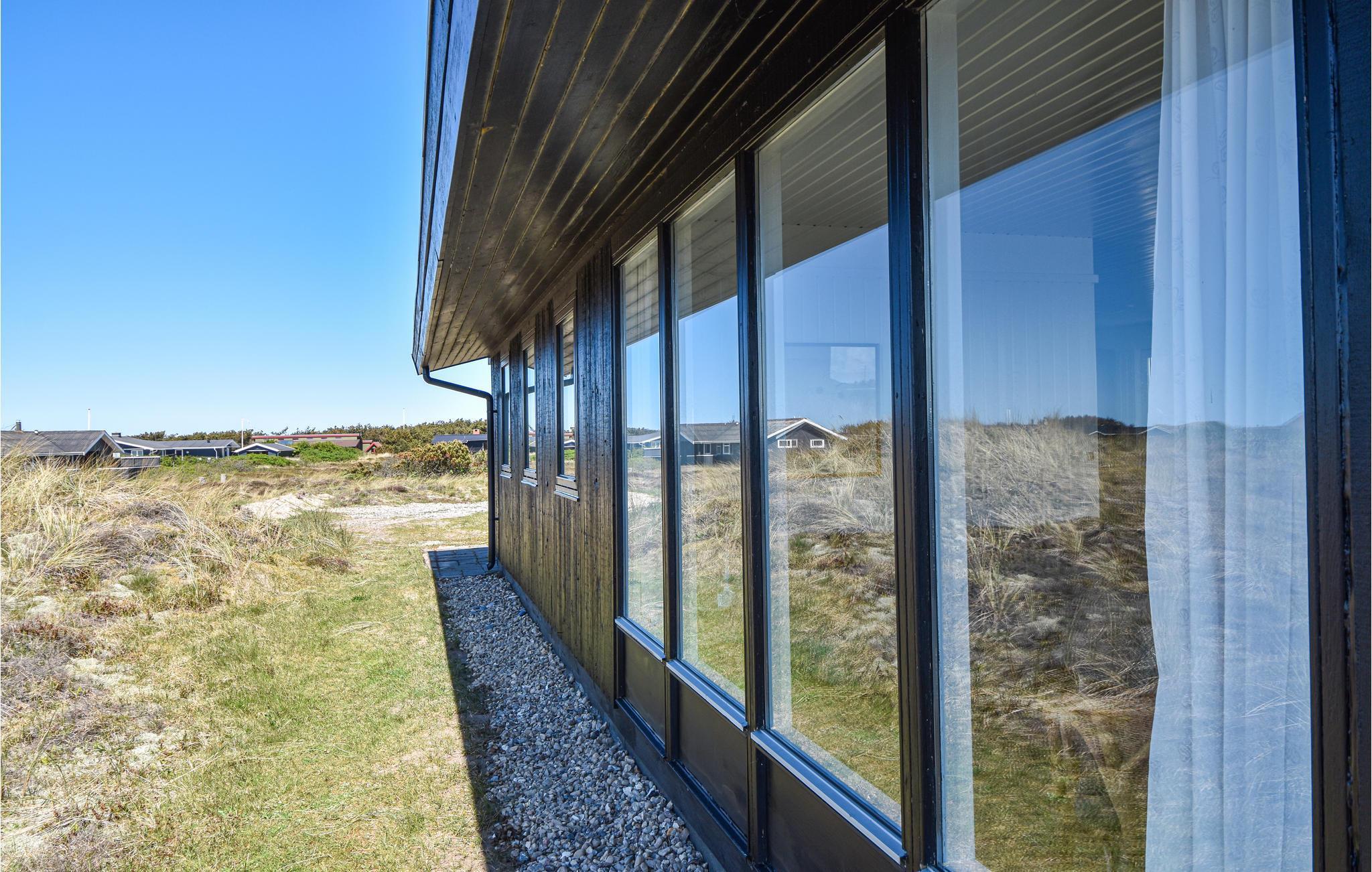Verbringen Sie Ihren nächsten Urlaub in diesem einfachen, funktionalen Ferienhaus, das Ruhe und ganz viel Natur bietet. Eingebettet in die weite Dünenlandschaft liegt dieses Haus nur einen kurzen Spaziergang vom Nordseestrand entfernt. Machen Sie es sich im offen gestalteten Wohnbereich gemütlich. Der Essplatz mit Blick ins Freie lädt zu gemeinsamen Mahlzeiten ein, während die Sofaecke mit TV entspannte Abende und eine wundervolle Aussicht verspricht. Die Küche ist freundlich eingerichtet und bietet direkten Zugang zur Terrasse. Helle Holzböden, große Fenster und skandinavisches Design sorgen für eine angenehme Atmosphäre.