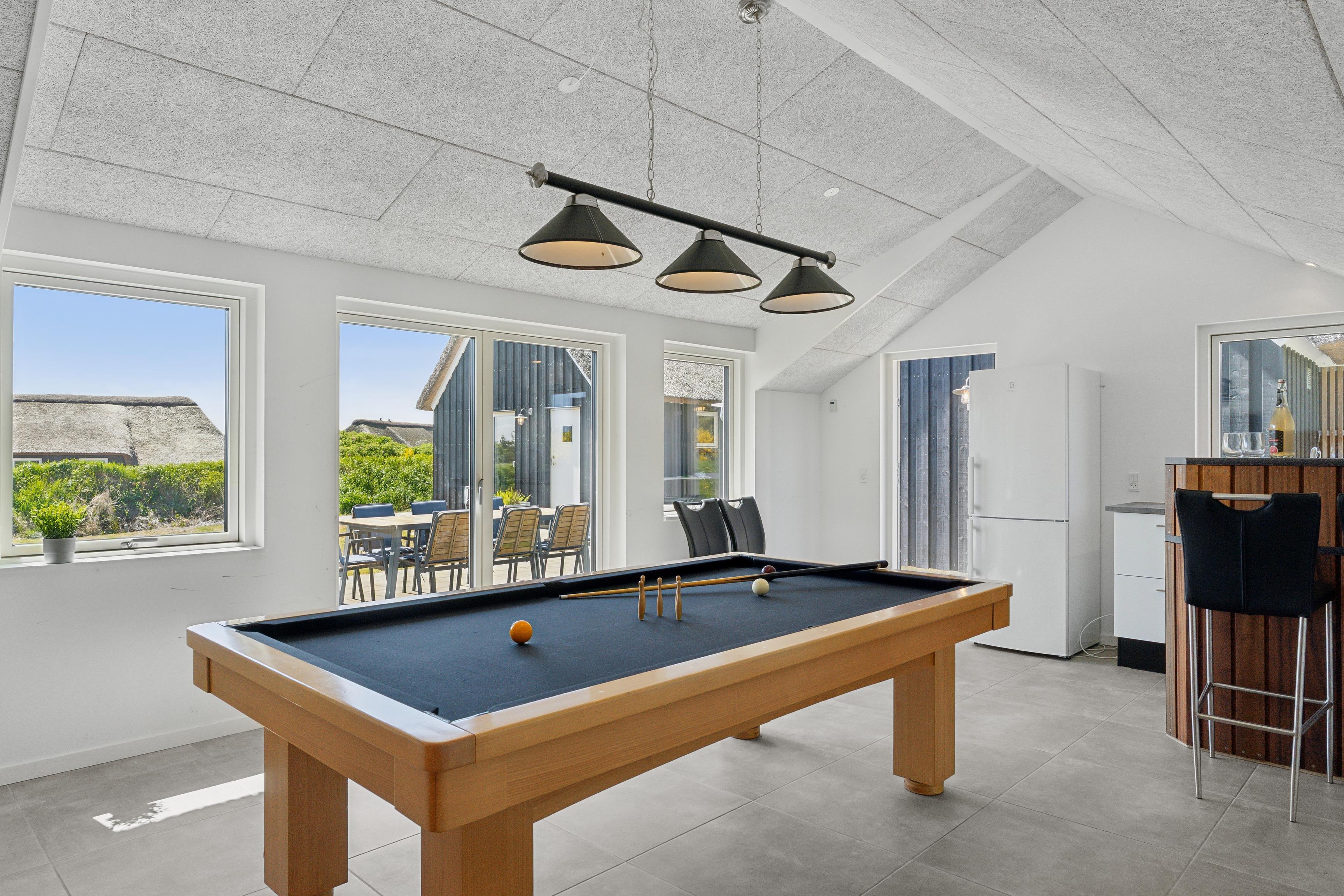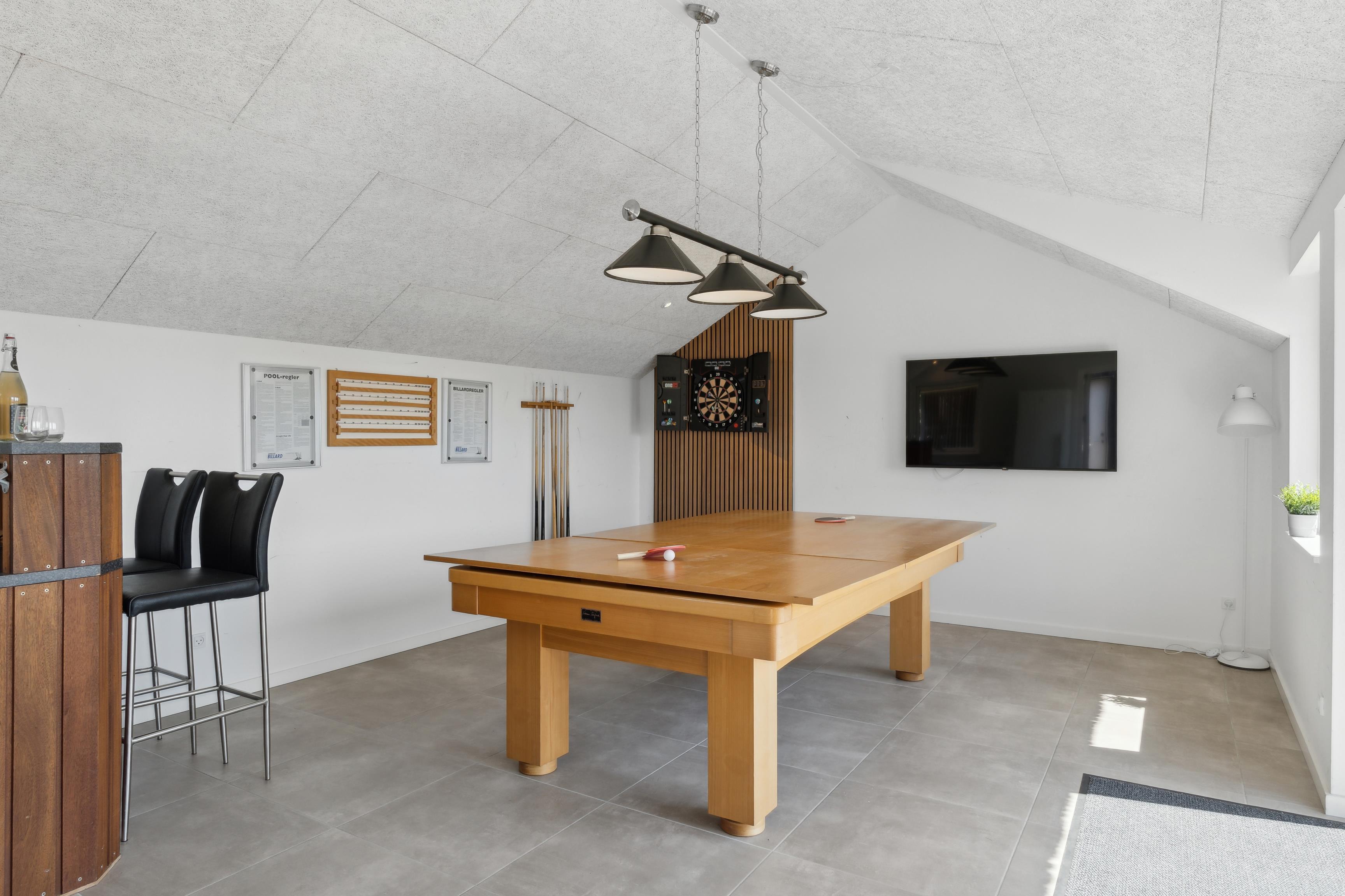 Der Aktivitätsraum bietet Billard und viel Platz für unterhaltsame Stunden. Zudem gibt es 2 Fernseher, Satellitenempfang mit deutschen Kanälen sowie das dänische DR1 und WLAN. Eine perfekte Basis für aktive und entspannte Tage.