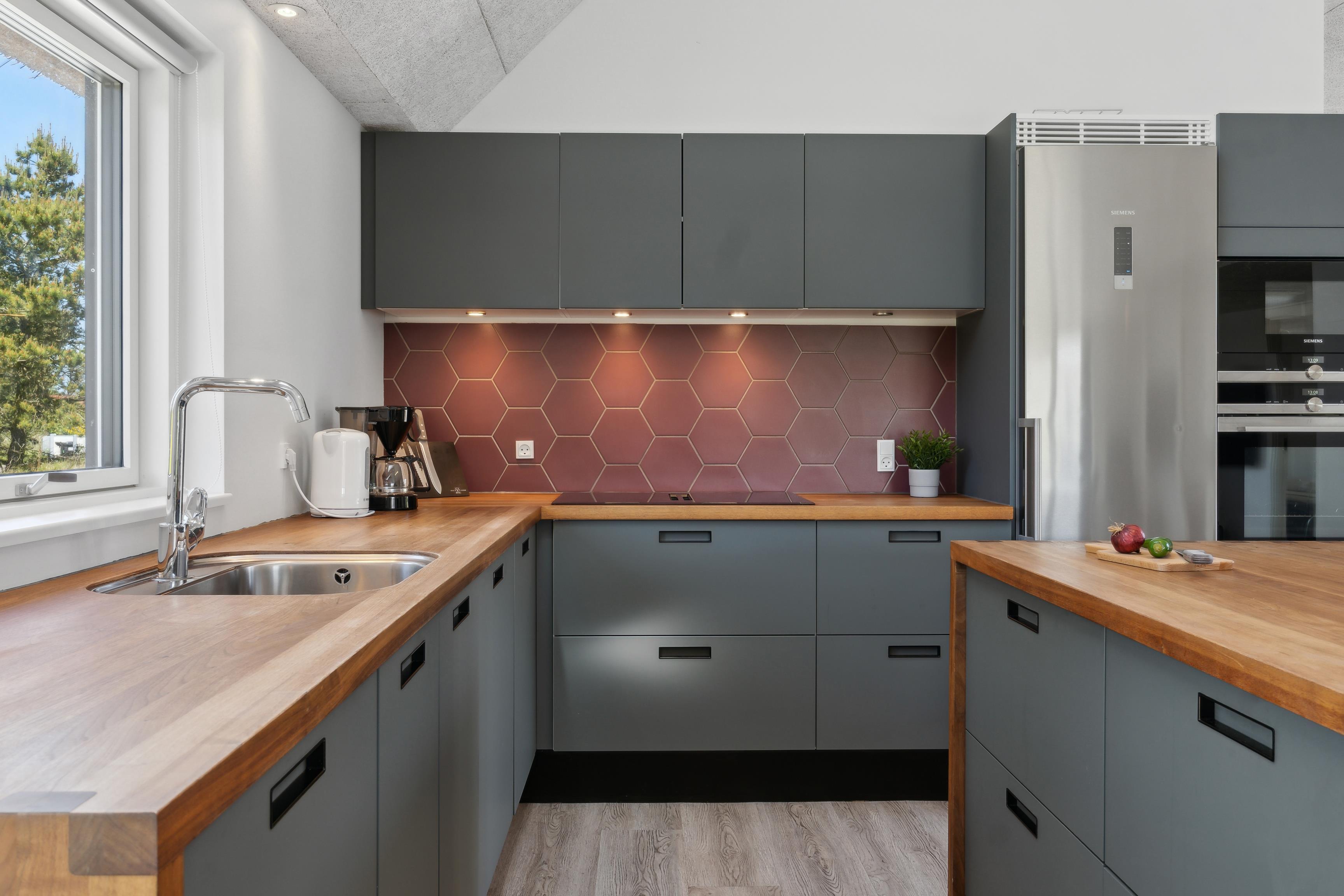 Die Küche verfügt über warmes und kaltes Wasser und ist selbstverständlich mit Geschirrspüler, Kaffeemaschine und weiteren Haushaltsgeräten ausgestattet. Außerdem stehen Waschmaschine und Trockner, Staubsauger sowie Fußbodenheizung im gesamten Haus für zusätzlichen Komfort zur Verfügung.