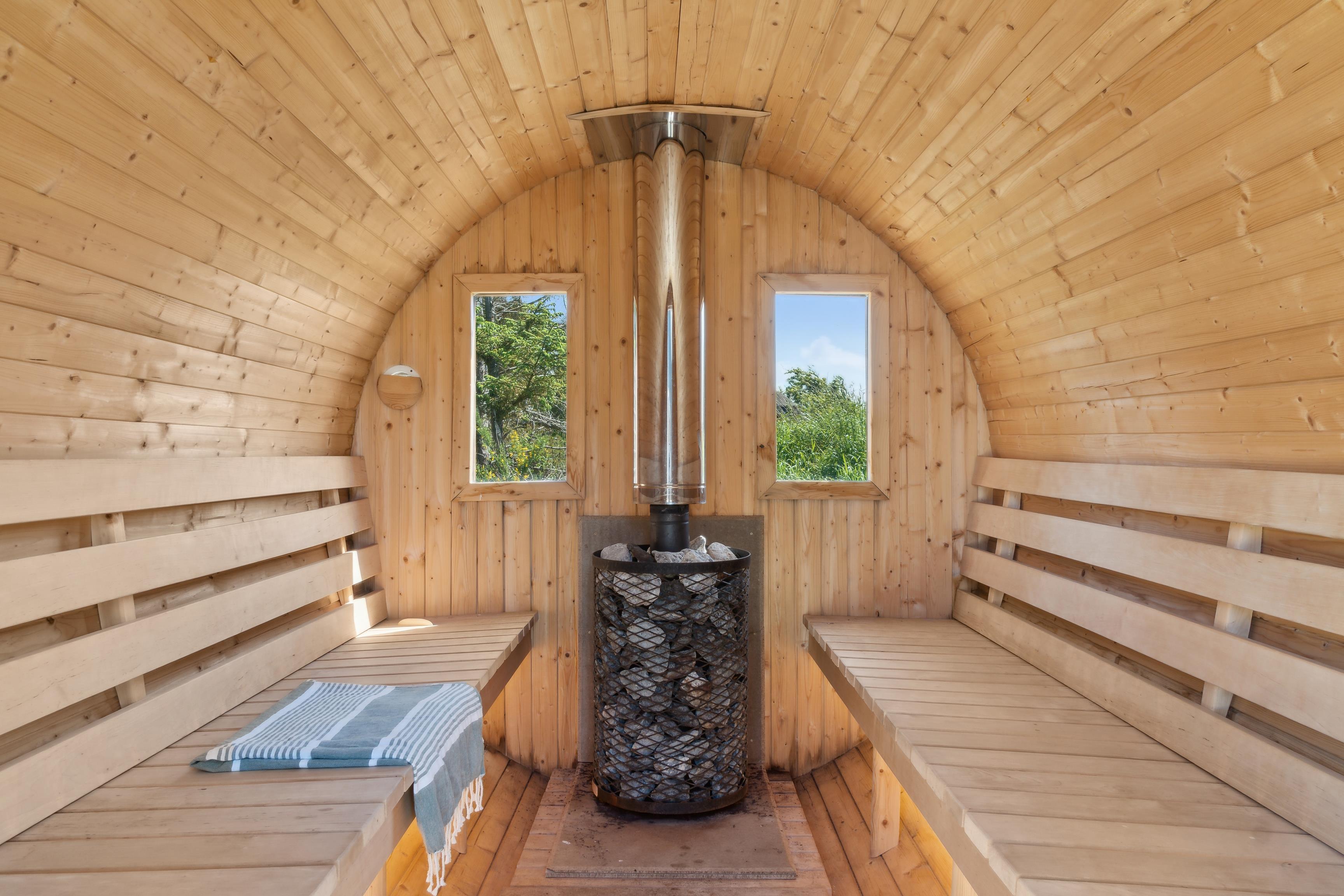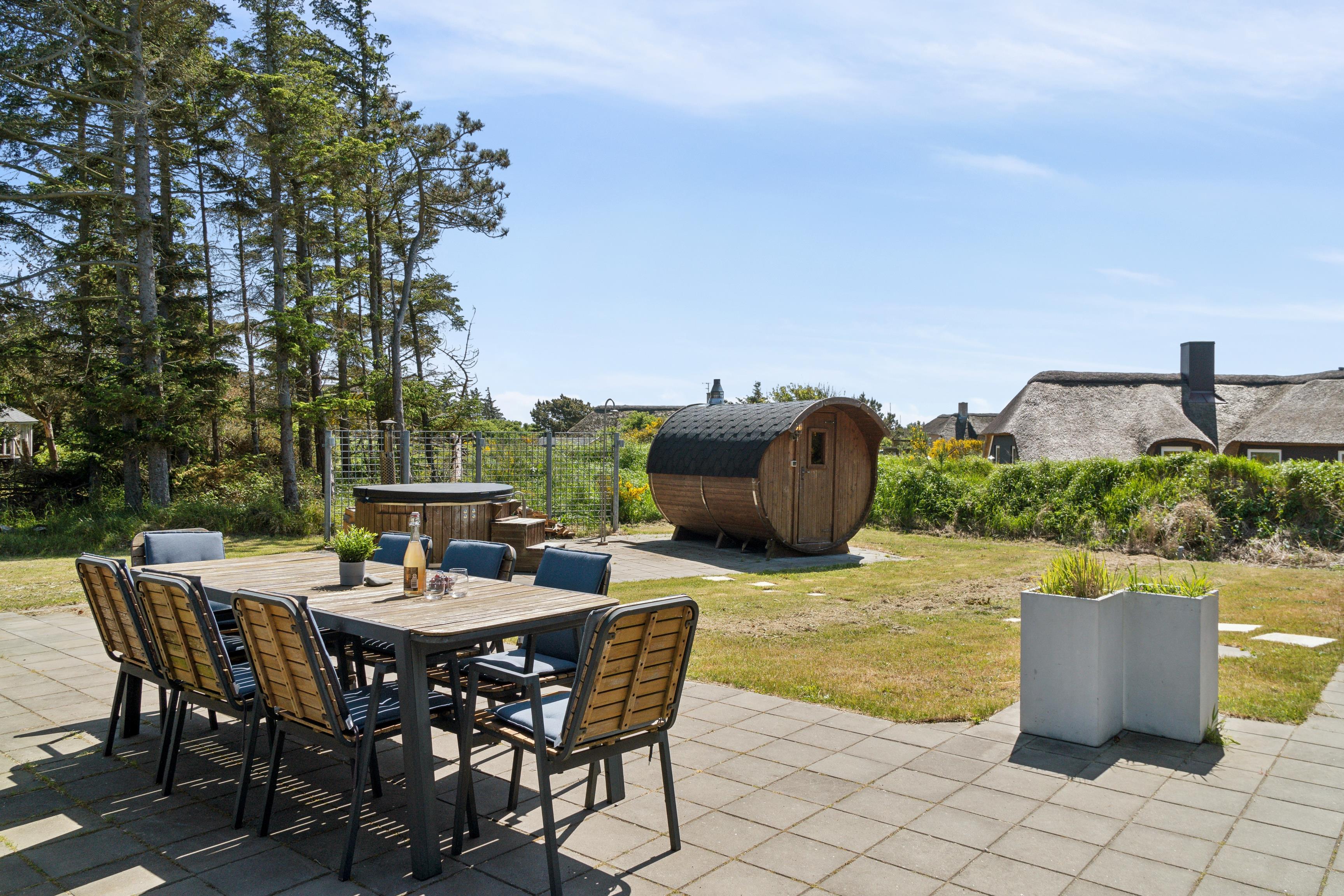 Auf dem uneinsehbaren Grundstück können Sie die Sonne auf der Terrasse genießen, leckere Mahlzeiten grillen und es sich in hochwertigen Gartenmöbeln bequem machen. Gönnen Sie sich eine Auszeit im Außen-Whirlpool oder in der Fasssauna – ideal nach einem Tag am Wasser oder in der Natur.