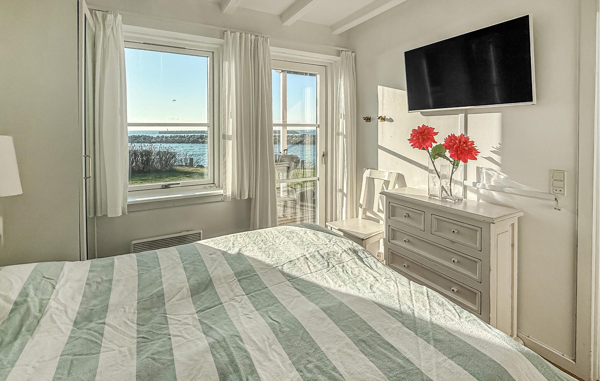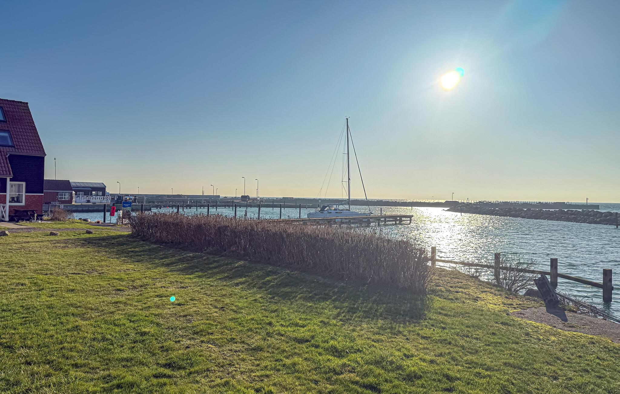 Genießen Sie einen maritimen Urlaub direkt am Wasser in dieser hellen Ferienwohnung mit Terrasse und Meerblick in Klintholm Havn.