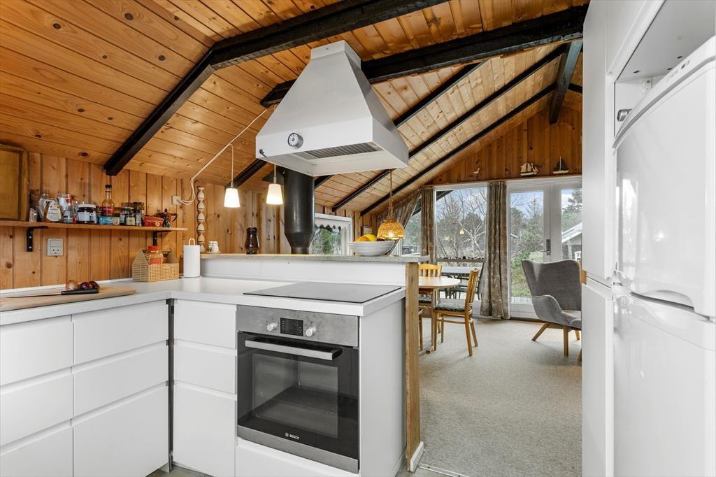 Im Inneren werden Sie von einer warmen und einladenden Atmosphäre empfangen, in der der klassische Ferienhausstil Geborgenheit und heimelige Stimmung vermittelt. Es gibt ausreichend Platz, um zur Ruhe zu kommen, den Kaffee in aller Ruhe zu genießen und die Tage ohne festen Plan zu gestalten. Der Wohnbereich bildet den zentralen Treffpunkt, an dem Gespräche fließen und gemeinsame Zeit nach einem Tag voller Erlebnisse in Ålbæk und Umgebung genossen werden kann. Das Licht, das durch die Fenster fällt, unterstreicht die gemütliche Einrichtung und lädt zu entspannten Stunden mit einem guten Buch, Brettspielen oder einer stillen Auszeit auf dem Sofa ein. Die Küche ist offen zum Wohnbereich, sodass das Kochen eine gemeinsame Aktivität wird und der Duft frisch zubereiteter Mahlzeiten die Urlaubsstimmung verstärkt. So fühlt man sich sofort zu Hause und kann die Ferienruhe von Anfang an genießen.