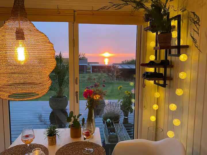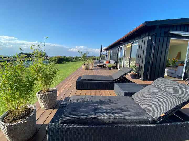180° Meerblick, 2 Schlafzimmer, Kaminofen, Terrasse, Pizzaofen und Elektrogrill, großer Garten und Außendusche. 350 m zum Badestrand, saisonales Restaurant, Eis und Bäckerei. Nähe Mols Bjerge, 20 km nach Ebeltoft, 50 km nach Aarhus. Einkauf und Tankstelle 4 km. Unterkunft Willkommen in Casa Mols, einem frisch renovierten Ferienhaus am Skødshoved Strand mit 180° Meerblick, nur 350 m vom Strand, Hafen und saisonalen Restaurants entfernt. Große, möblierte Terrasse (80 m²) mit Morgen- und Abendsonne. Helles, freundliches Interieur. Wohnzimmer mit großer Lounge-Couch und Falttüren mit Panoramablick auf die Aarhus-Bucht. Offene Küche, Kaminofen und energieeffiziente Wärmepumpe. Auf der Terrasse stehen ein Morsø-Pizzaofen und Elektrogrill. Zwei Schlafzimmer mit neuen Matratzen (140 cm und 120 cm). Ein Zimmer mit vollständig zu öffnender Falttür, das andere mit Glastür und Meerblick. Zugang Privates Ferienhaus (55 m²), Terrasse (80 m²), Garten (1.400 m²), Bad mit Dusche, Außendusche, gute Parkmöglichkeiten. Hinweise Renovierung 2020. Warmwasserboiler 20 l. Zwei Außengrills (Gas & Pizzaofen). Fantastischer Garten mit Meerblick.