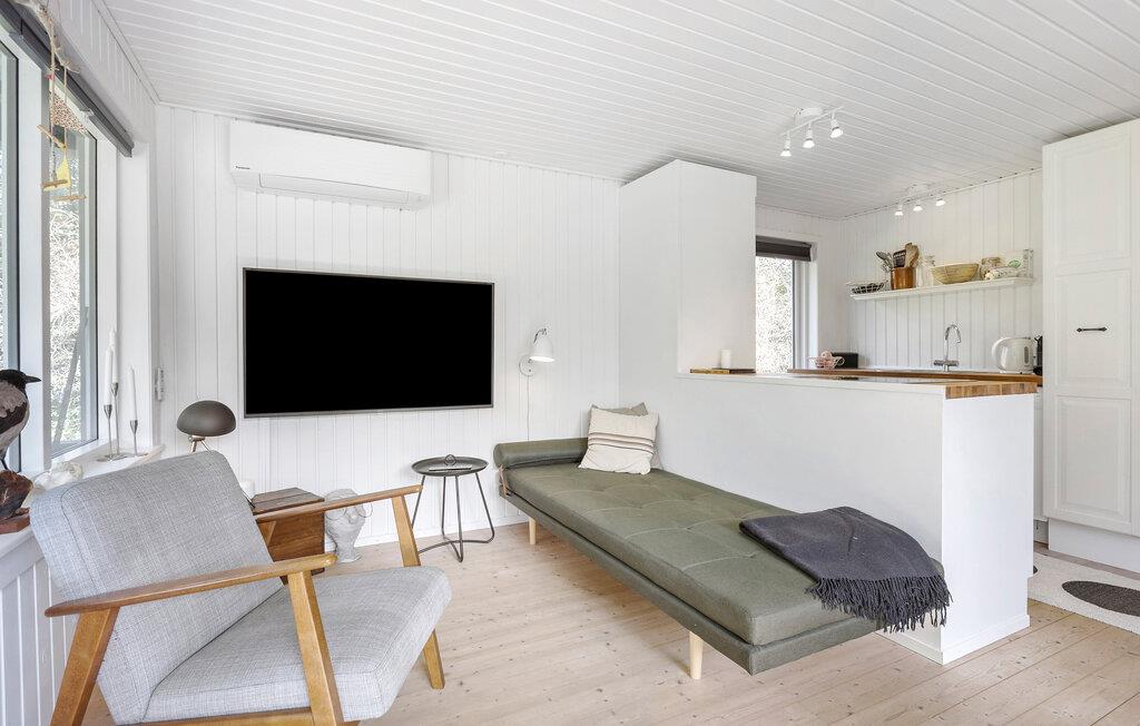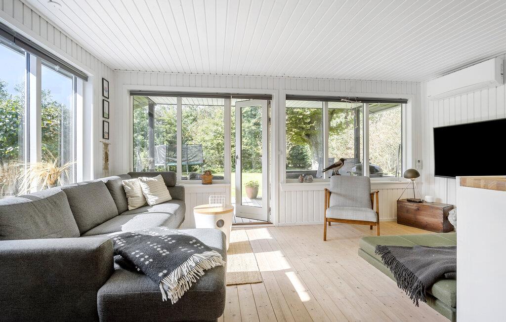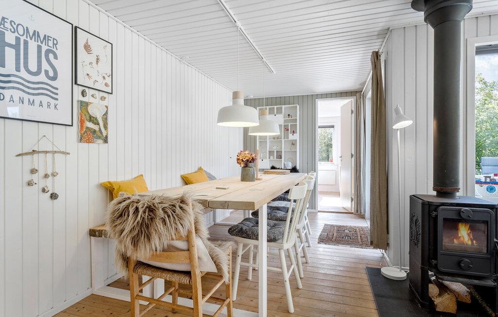 Auf diesem Grundstück herrscht Ruhe, Stille und Idylle, wo Sie in diesem einladenden Haus eine wunderbare Basis erhalten. Das Haus strahlt Licht, Luft und klassischen skandinavischen Sommerhauscharme aus. Treffen Sie sich zu einem ruhigen Frühstück am Esstisch und genießen Sie die schöne Aussicht auf den Garten, während Sie sich auf ein Programm einstimmen.