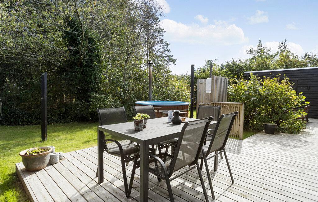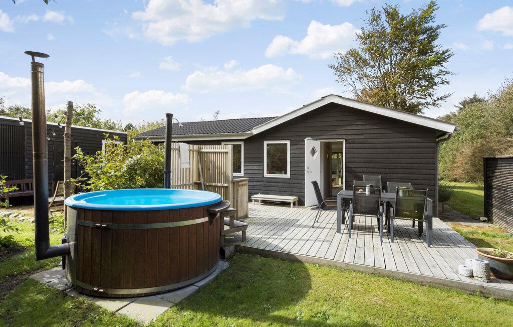 Elegantes Ferienhaus in Spøttrup mit Garten, Trampolin und finnischem Holzbad für erholsame Urlaubstage.