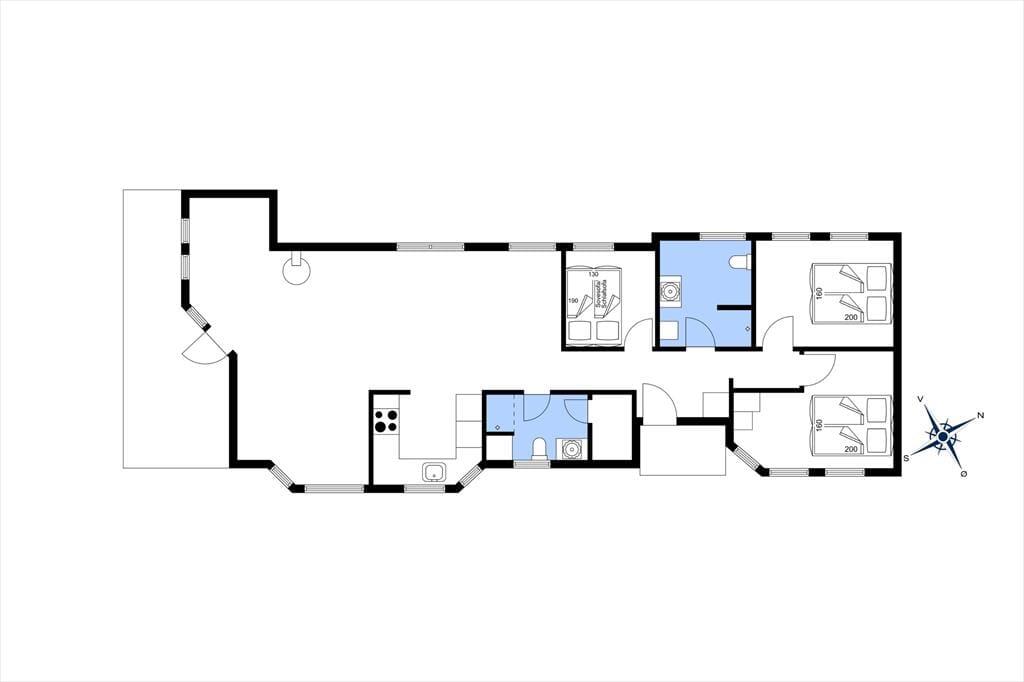 Ein neueres und sehr gepflegtes Ferienhaus nach moderner Architektur und mit einer intimen, gemütlichen Ferienhausatmosphäre. Die Einrichtung ist gut und überschaubar strukturiert. Im Fokus liegt das zentral gelegene Wohnzimmer mit den großen Panoramafenstern. Im Haus gibt es eine Kombination aus großem Aufenthaltsraum und einer Küche. Die helle Küche verfügt über einen Ofen, einen Herd mit Ceran-Kochfeldern, eine Mikrowelle, eine Spülmaschine und einen Kühlschrank mit Gefrierfach. Der große und helle Aufenthaltsraum hat einen Zugang zur teilweise überdachten Terrasse, hohe Decken, einen gemütlichen Essbereich, Sofas und ein Fernsehgerät (1 deutsches Programm - ZDF), und Chromecast. Beide Badezimmer haben eine Dusche und eines davon eine Waschmaschine. Es gibt drei Schlafzimmer, zwei mit Doppelbetten und eins mit einem doppelten Schlafsofa ausgestattet. Kinderbett und Kinderstuhl ist auch vorhanden. Das Haus wird mit einer Wärmepumpe, einem Kaminofen und mit Elektroheizungen beheizt.