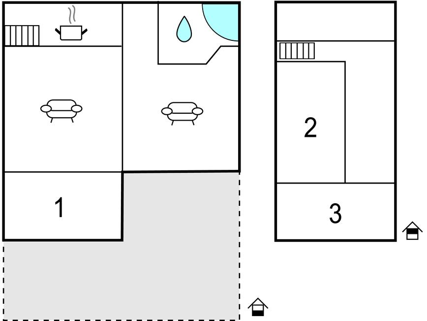 Badezimmer 6m2 (nr. 1) - WC. Warmes und kaltes Wasser. Dusche