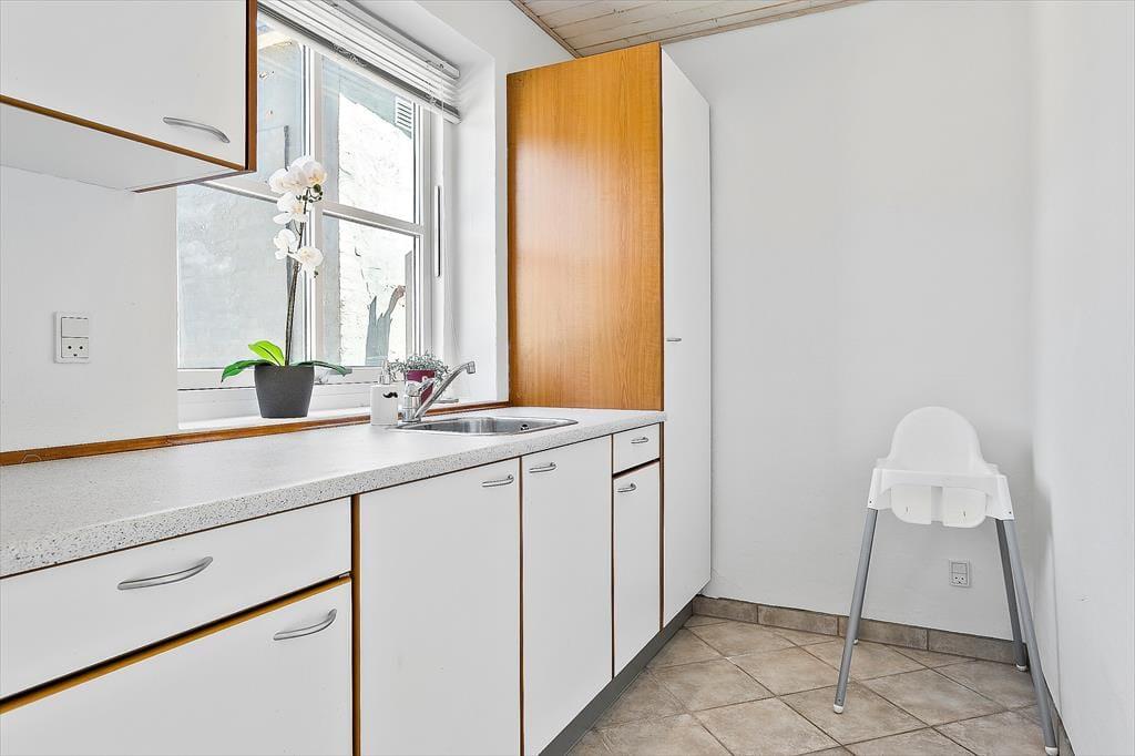Die alte Garage fungiert als helles und geräumiges Nebengebäude, das über eine eigene Küche, einen Schlafraum und ein schönes Badezimmer mit Fußbodenheizung und Dusche verfügt. Im Eingangsbereich steht zudem eine Waschmaschine für Sie bereit.