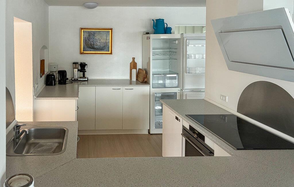 Lassen Sie sich von den weitläufigen Räumen empfangen und freuen Sie sich auf einen Aufenthalt, der Ihnen Erholung und Abwechslung zugleich ermöglicht. Die unterschiedlichen Sitzgruppen bieten Platz für gemeinsame Mahlzeiten, Spieleabende oder ruhige Momente mit einem Buch. Machen Sie es sich am Esstisch bequem oder nutzen Sie die gemütliche Sofaecke für Gespräche oder entspannte Fernsehabende. Die großzügige Küche ermöglicht Ihnen das Kochen in geselliger Runde. Genießen Sie auch den Blick auf den Kaminofen, der Wärme und Behaglichkeit schafft.