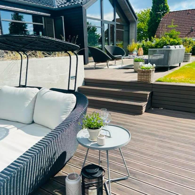 Rund um das Haus finden Sie schöne Terrassen mit gemütlichen Lounge-Bereichen sowie eine überdachte Terrasse mit Grillmöglichkeiten – ideal, um ein Glas kühlen Weißwein und ein leckeres Grillgericht mit Blick aufs Wasser zu genießen.