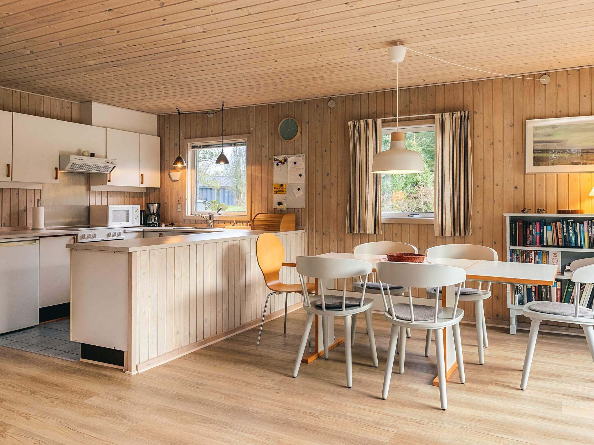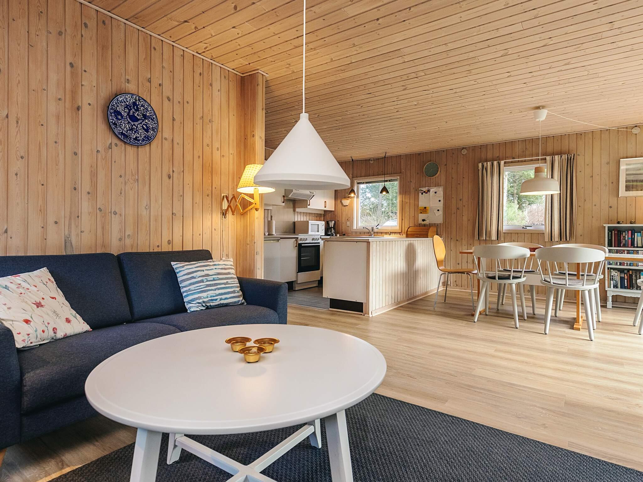 Das mit persönlicher Note eingerichtete Ferienhaus bietet einen familienfreundlichen Rahmen für einen erholsamen Familienurlaub. Für gemütliche Abendstunden steht im Wohnbereich ein Holzofen bereit, zudem TV mit einigen deutschen Sendern zur Auswahl. Die Küche ist offen in den Wohn-/Essbereich integriert.