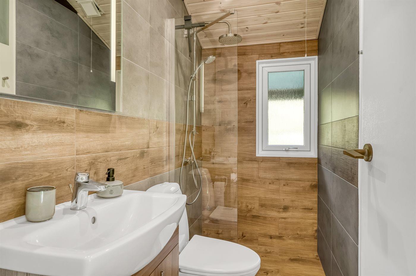 Es gibt 1 Badezimmer mit Duschnische und 1 Toilette.