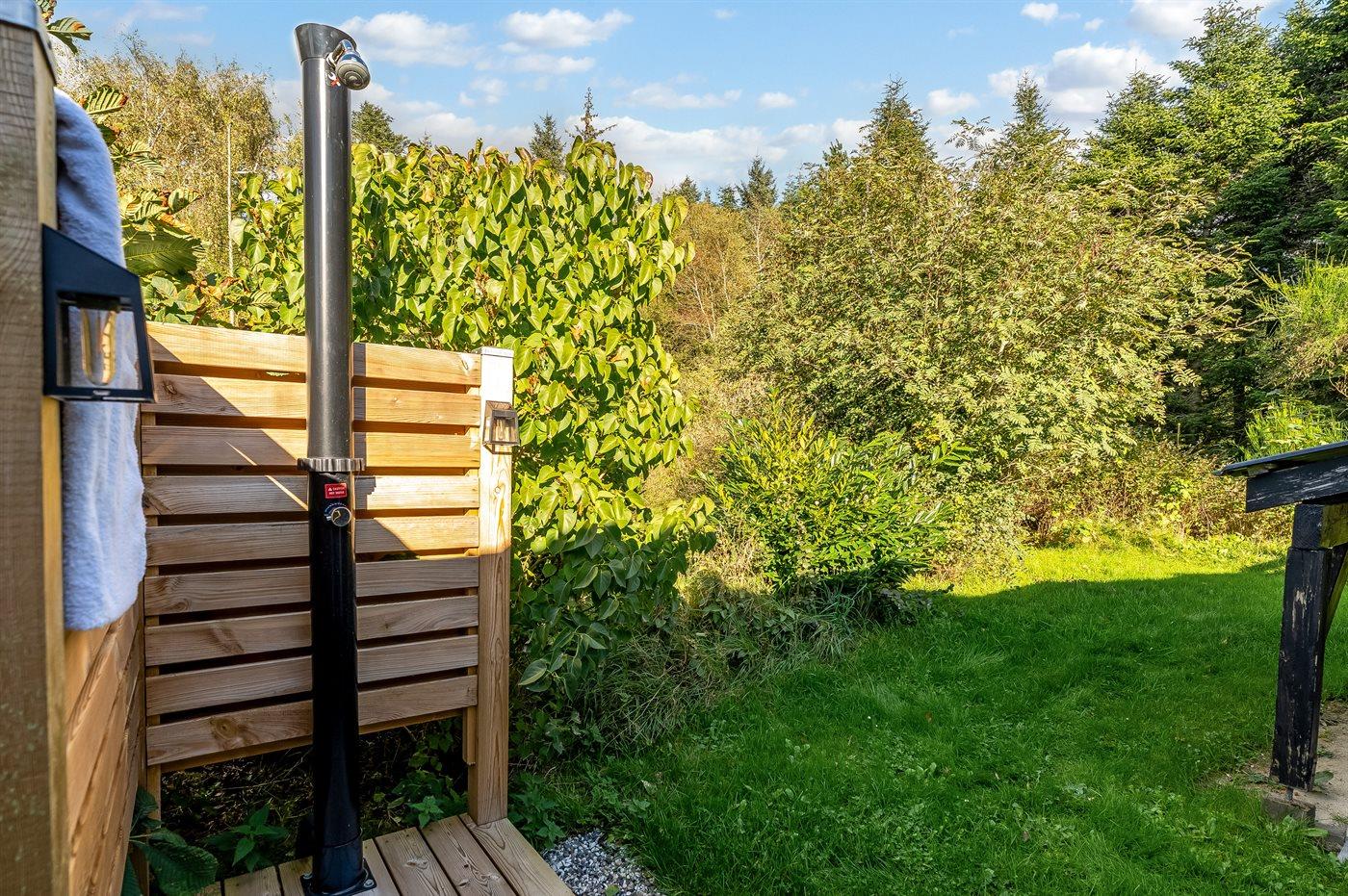 Die Ferienunterkunft liegt auf einem 899 m² großen Naturgrundstück. Die Entfernung zum Meer beträgt 3500 m. Die Entfernung zum Fjord beträgt 3500 m. Die nächste Einkaufsmöglichkeit liegt 1500 m entfernt. Es steht ein offenes Terrassenareal zur Verfügung. Außerdem gibt es überdachte Terrasse. Geräteraum. Schaukel. Trampolin. Außendusche. Es steht ein Grill zur Verfügung. Es ist ein Ladestecker für Elektroautos installiert. CEE Stecker. Mit einer Ladeleistung von 11 kW. Parkplatz auf dem Grundstück.