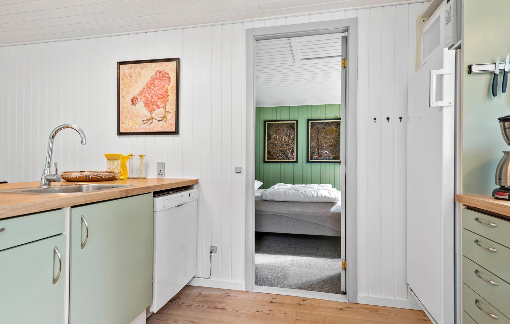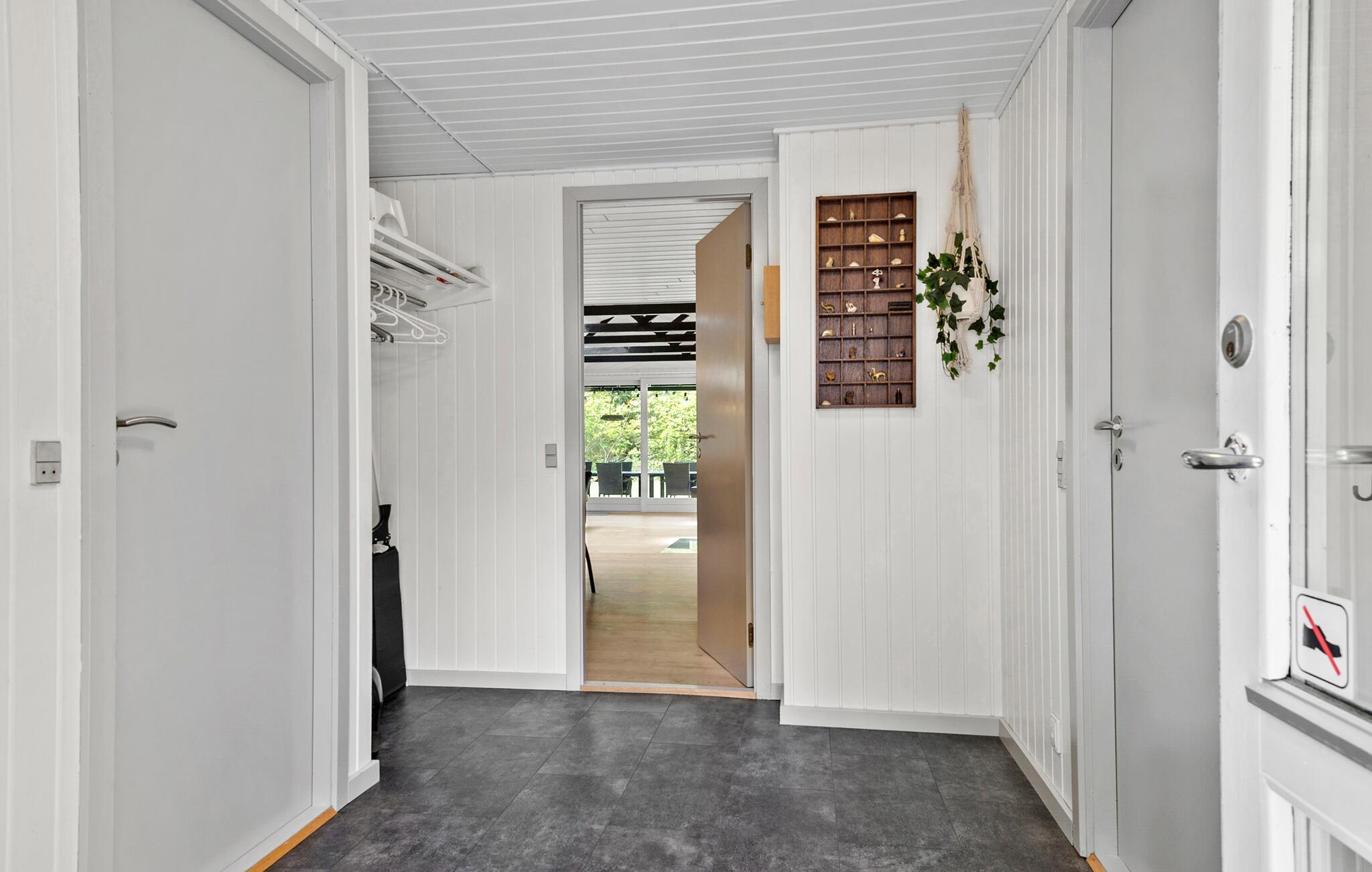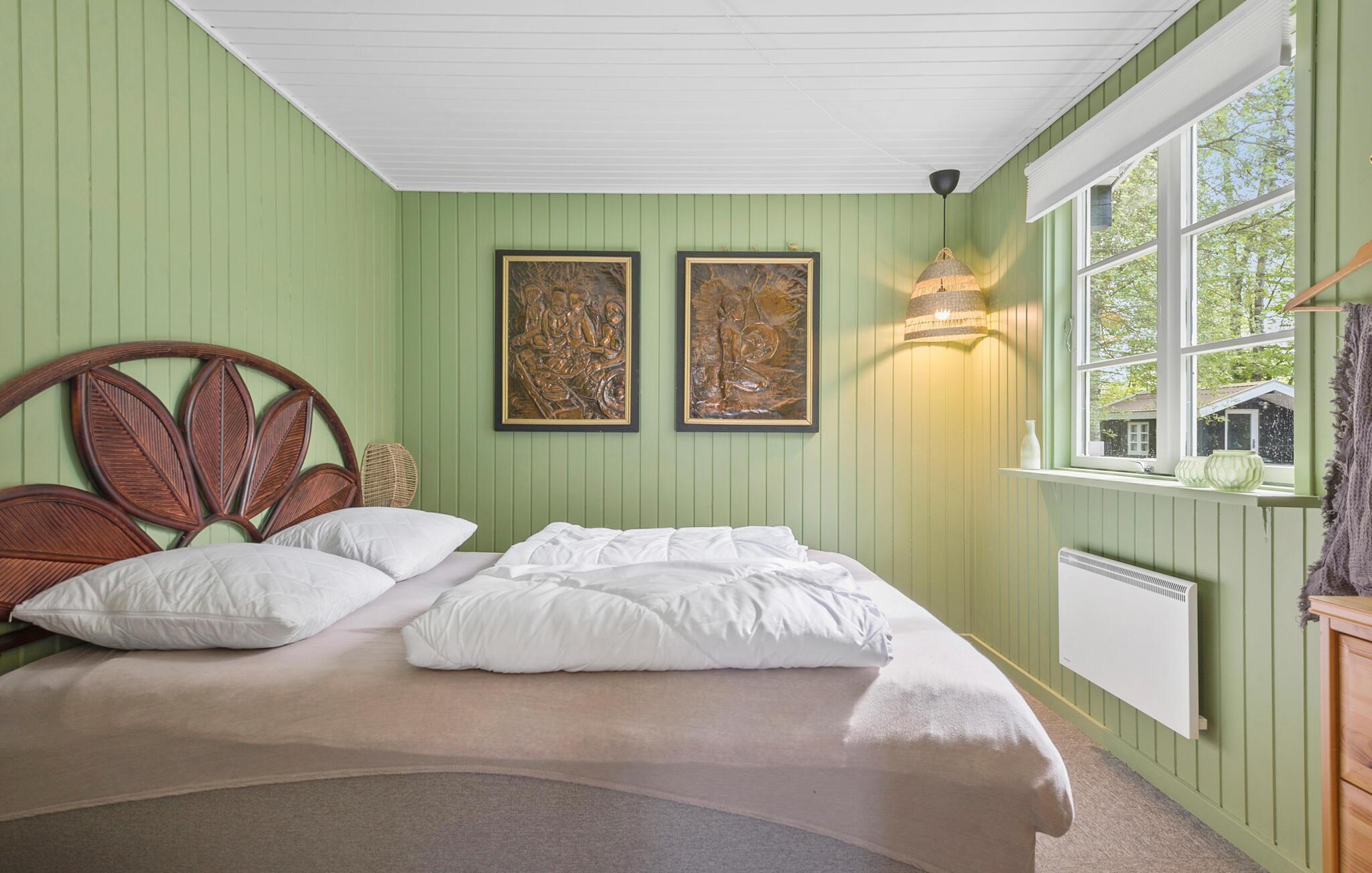 Das komfortable Haus empfängt Sie in schöner Lage auf einem von Bäumen umgebenen Grundstück. Die hellen Räume mit ruhiger Farbgebung und dekorativen Balken im Wohnbereich bilden einen gemütlichen Rahmen, in dem Sie den Alltag weit hinter sich lassen können. Entspannen Sie hier mit schönem Blick in die Natur durch große Panoramafenster. Machen Sie es sich mit einem Film oder Spielen auf dem Sofa gemütlich und genießen Sie die Urlaubsabende, während Sie bis spät am Kaminofen plaudern.