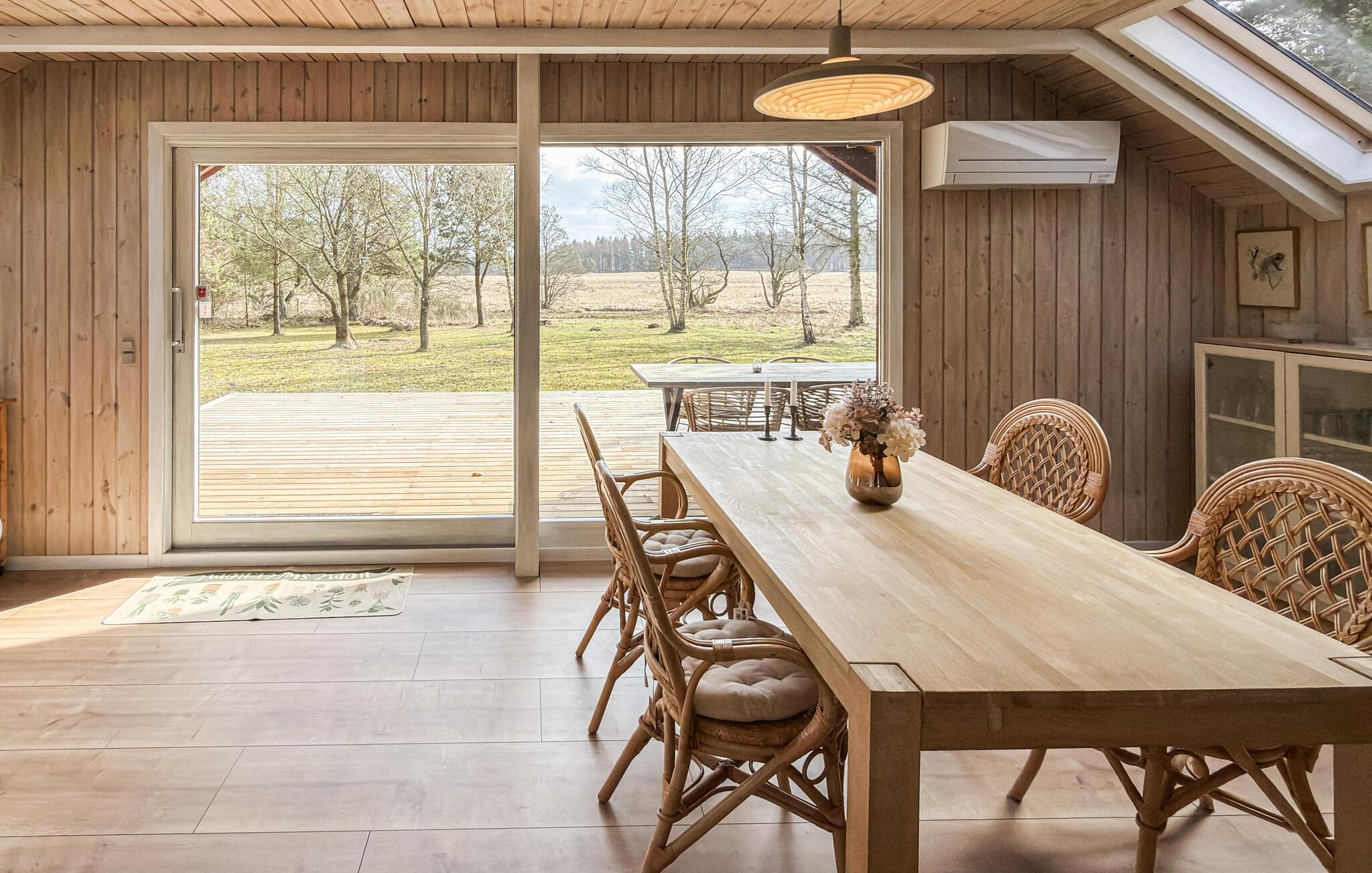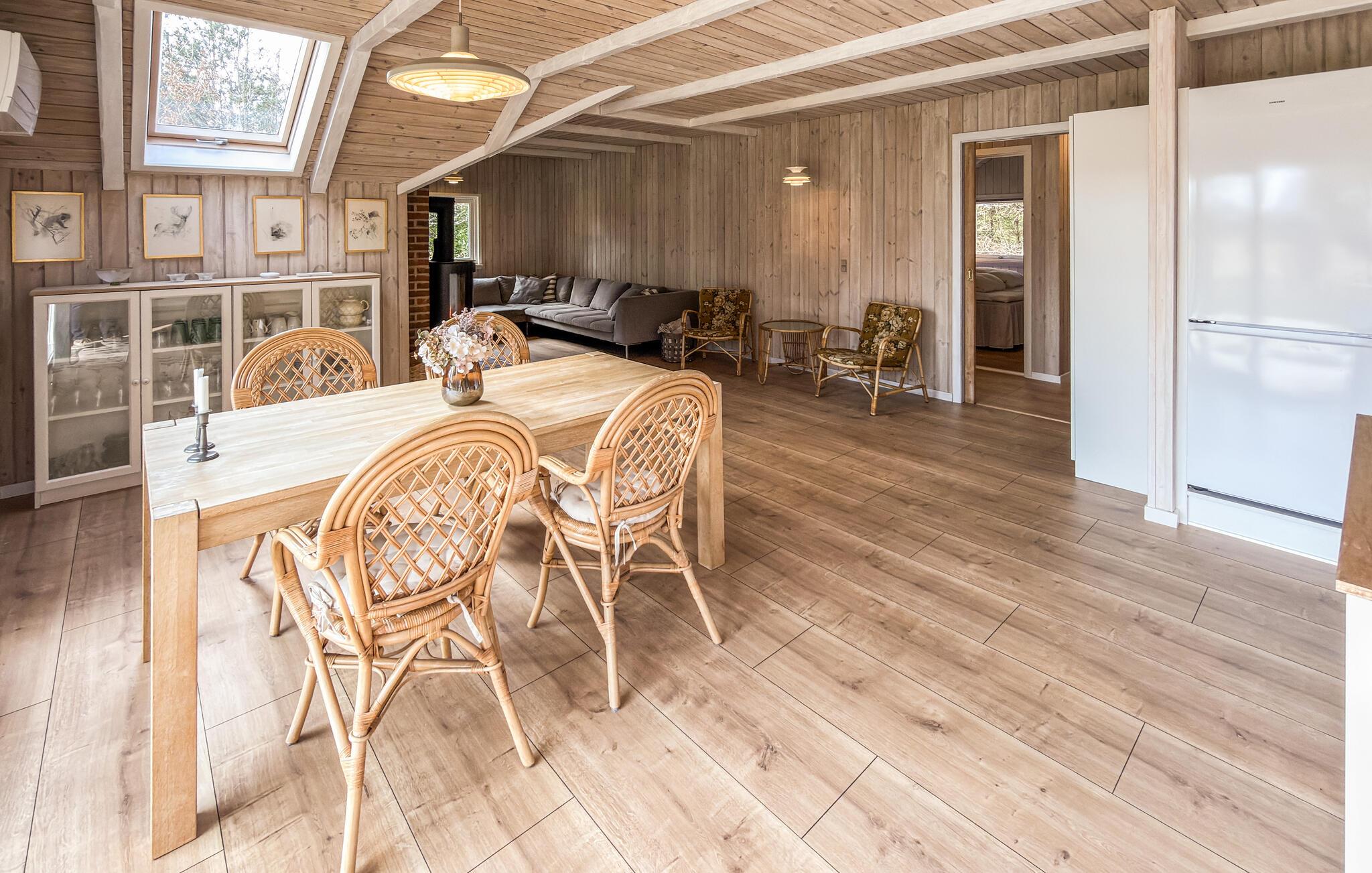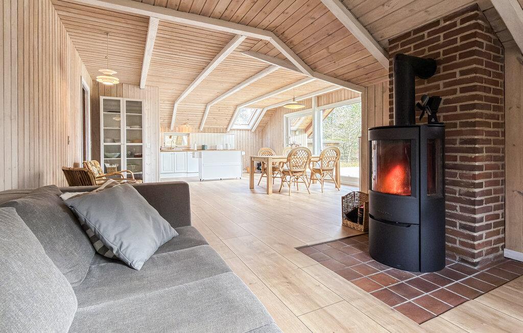 Dieses Haus vereint Behaglichkeit und modernen Komfort auf ganz harmonische Weise. Ein Kaminofen, eine bequeme Sofalandschaft und viel Holz schaffen eine Atmosphäre, in der Sie sich schnell wie zuhause fühlen. Hören Sie einen interessanten Podcast auf dem Sofa, streamen Sie die neuesten Serien oder verbringen Sie einen lustigen Abend bei Brett- und Kartenspielen.