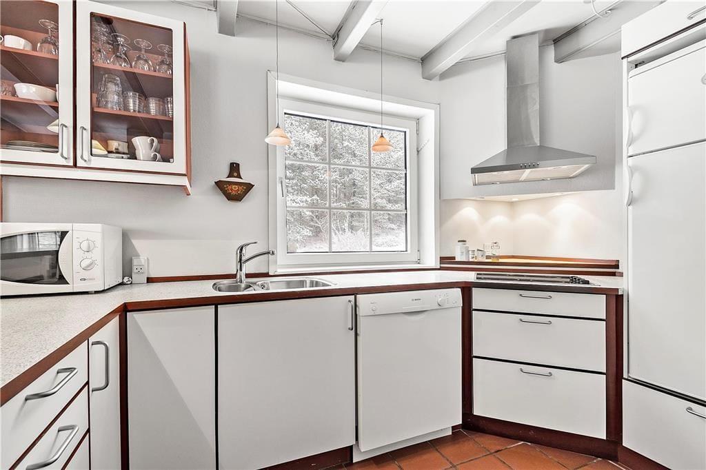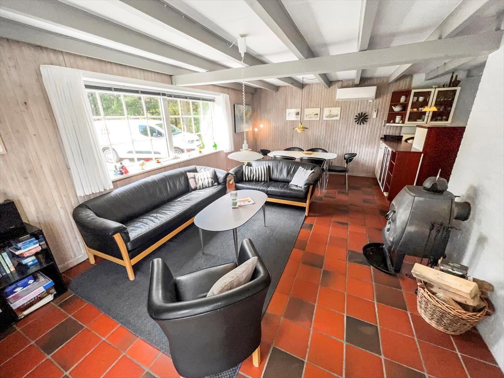 Hier an der malerischen Adresse steht ein reetgedecktes Ferienhaus, das 1968 erbaut und seitdem sorgfältig renoviert und modernisiert wurde. So ist ein schönes Feriendomizil entstanden, das nicht nur im Erdgeschoss, sondern auch im ersten Stock voll von gemütlicher Atmosphäre und modernem Komfort steckt. Die drei Schlafzimmer des Hauses sind geschickt so verteilt, dass sie sich sowohl im Obergeschoss als auch im Erdgeschoss befinden, während sich die Gästetoilette und das Badezimmer unten befinden, von denen Ersteres mit einer Waschmaschine und Letzteres mit einer Sauna ausgestattet ist. Das Gleiche gilt für den Aufenthaltsbereich, welcher sich aus einem schönen Wohnzimmer mit Brennofen und einer guten Küche zusammensetzt. Dank dieser offenen Raumaufteilung kannst du problemlos an der gemütlichen Unterhaltung über die Erlebnisse des Tages teilnehmen, während du Köstlichkeiten für das Abendessen zubereitest.