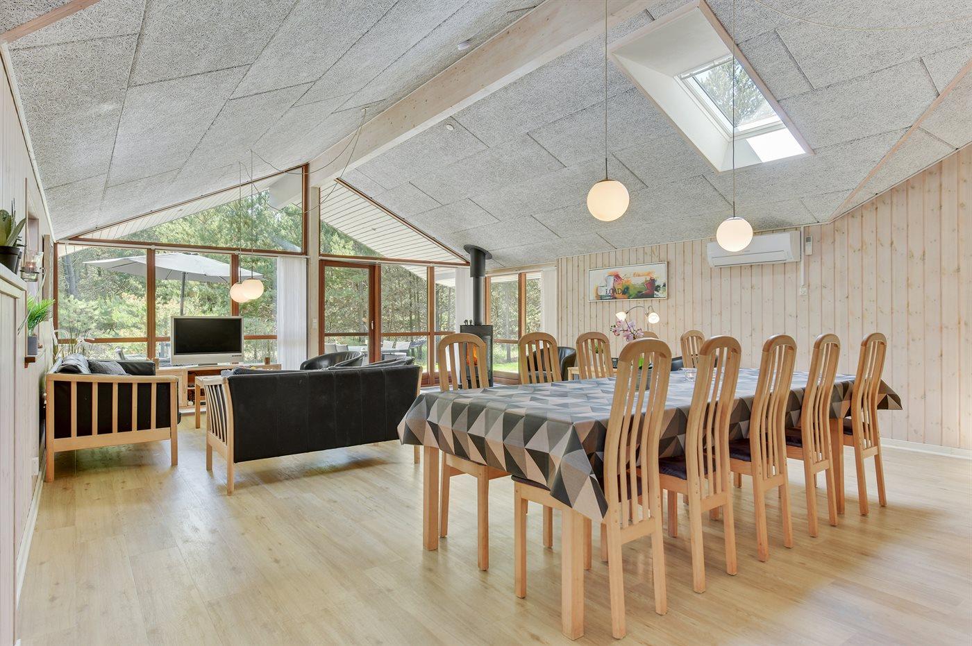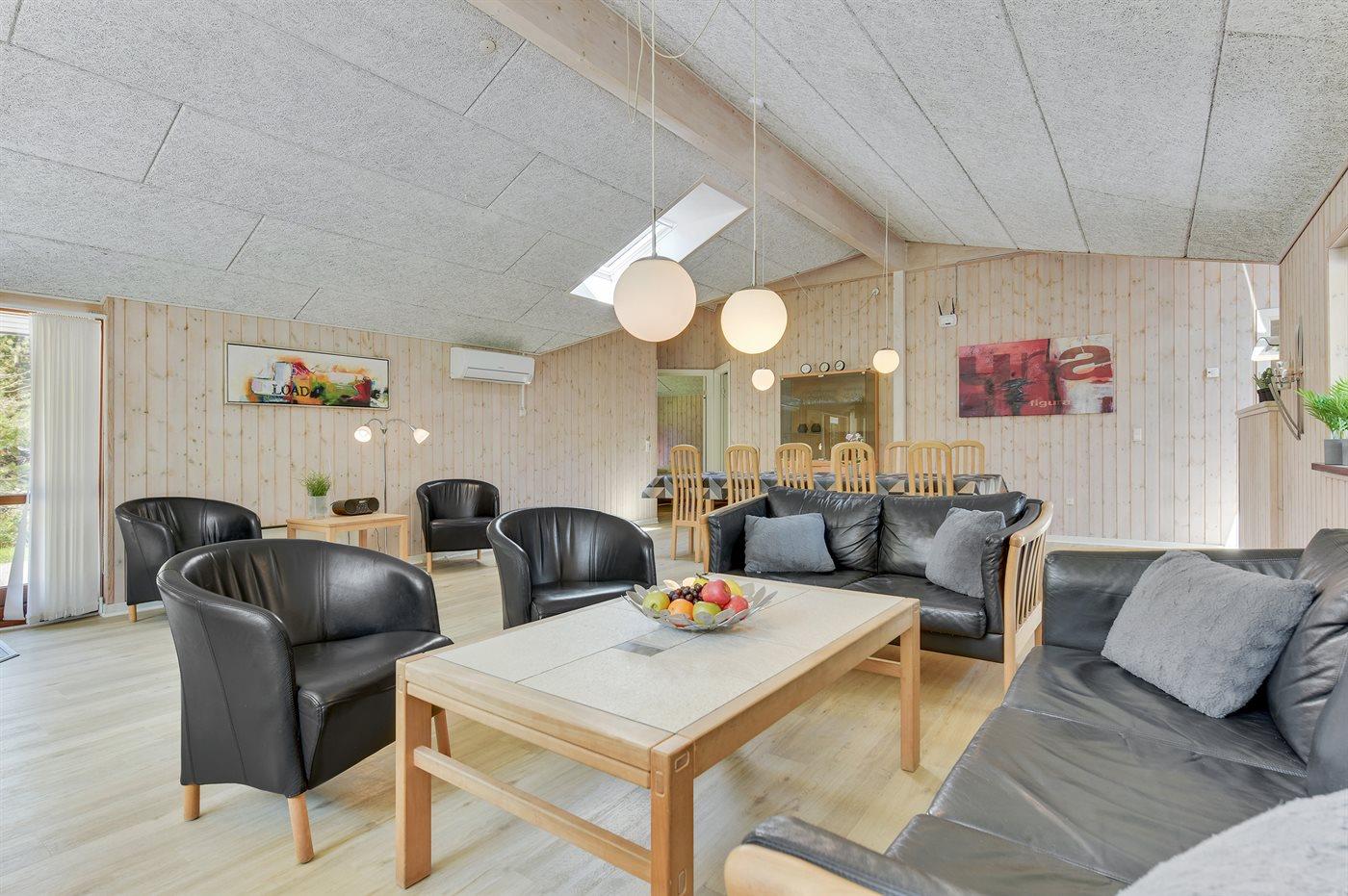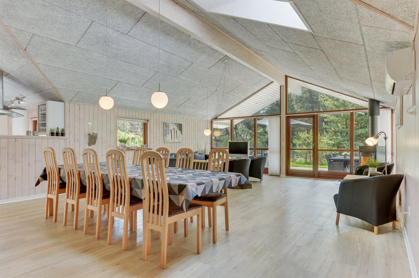 Großes, herrliches Ferienhaus dicht am Wasser gelegen - auf einem großen, von Bäumen umgebenen Naturgrundstück am Ende einer Sackgasse. Innen erscheint das Haus wegen der hohen Decken hell und geräumig.