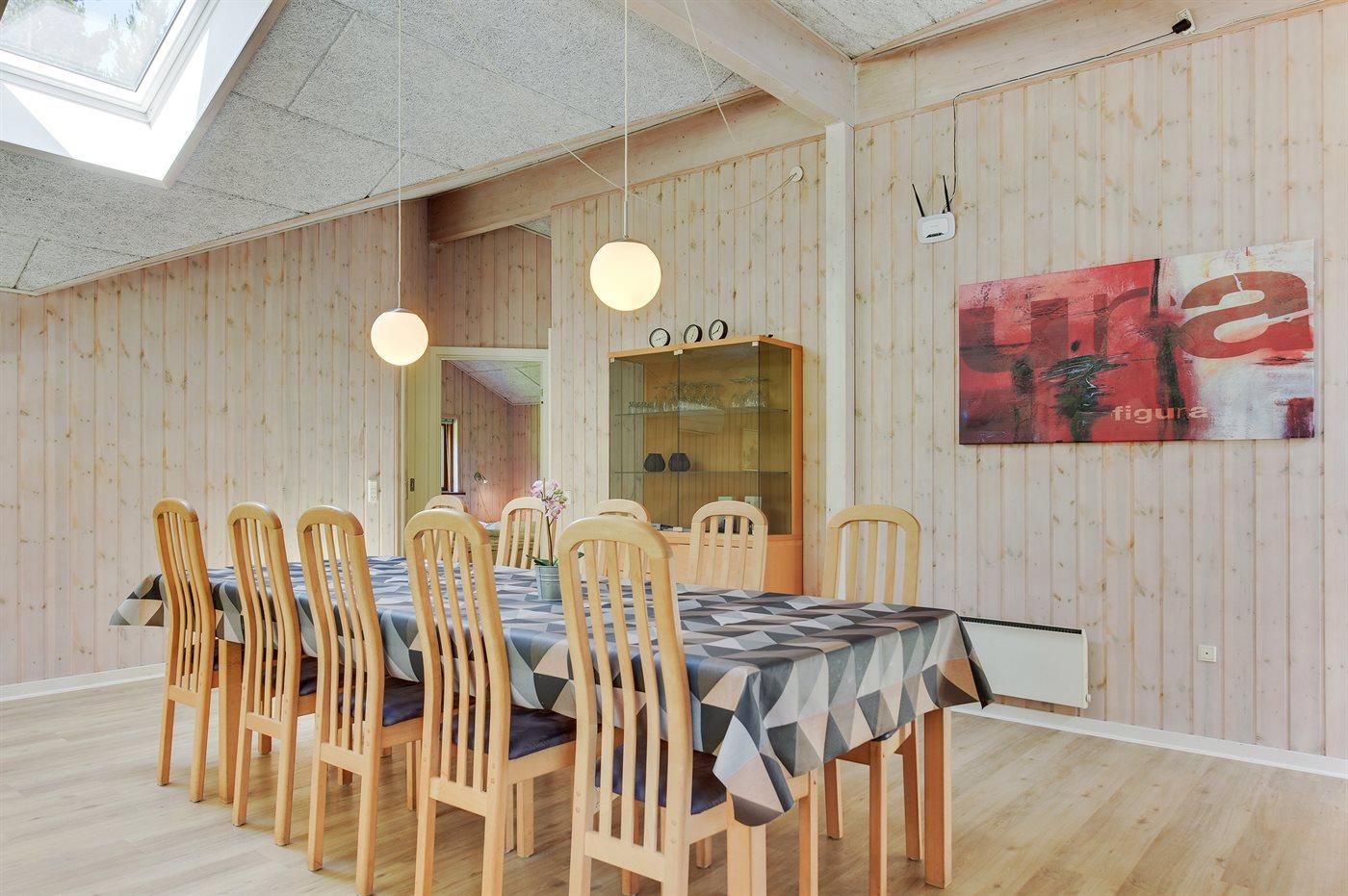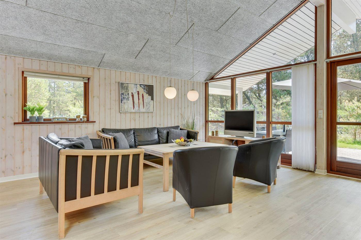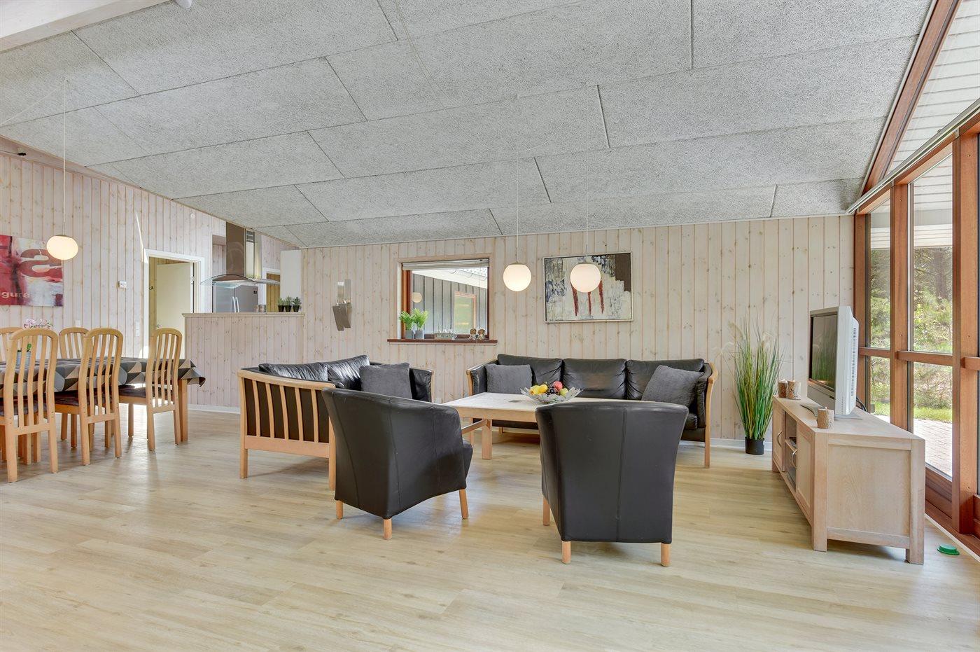 Großes, herrliches Ferienhaus dicht am Wasser gelegen - auf einem großen, von Bäumen umgebenen Naturgrundstück am Ende einer Sackgasse. Innen erscheint das Haus wegen der hohen Decken hell und geräumig.