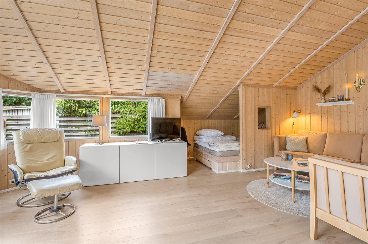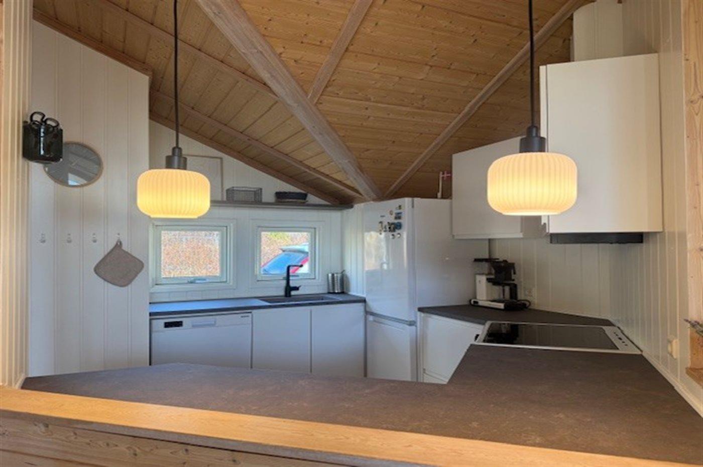 Das Ferienhaus liegt schön und ganz nah am Wasser. Es lädt euch zu Gemütlichkeit, Erlebnissen und Entspannung ein. Die Ferienunterkunft besteht aus einem Haupthaus und einem hellen Gästehaus mit eigenem Badezimmer. Im Haupthaus erwartet euch eine große und geschmackvolle Wohnküche – herrlich erhellt durch das Tageslicht, das durch die großen bodentiefen Fenster strömt. Außerdem gibt es ein schönes Wohnzimmer. Die Schlafplätze verteilen sich auf ein Doppelbett im Gästehaus sowie 4 Einzelbetten und ein Alkoven im Haupthaus.