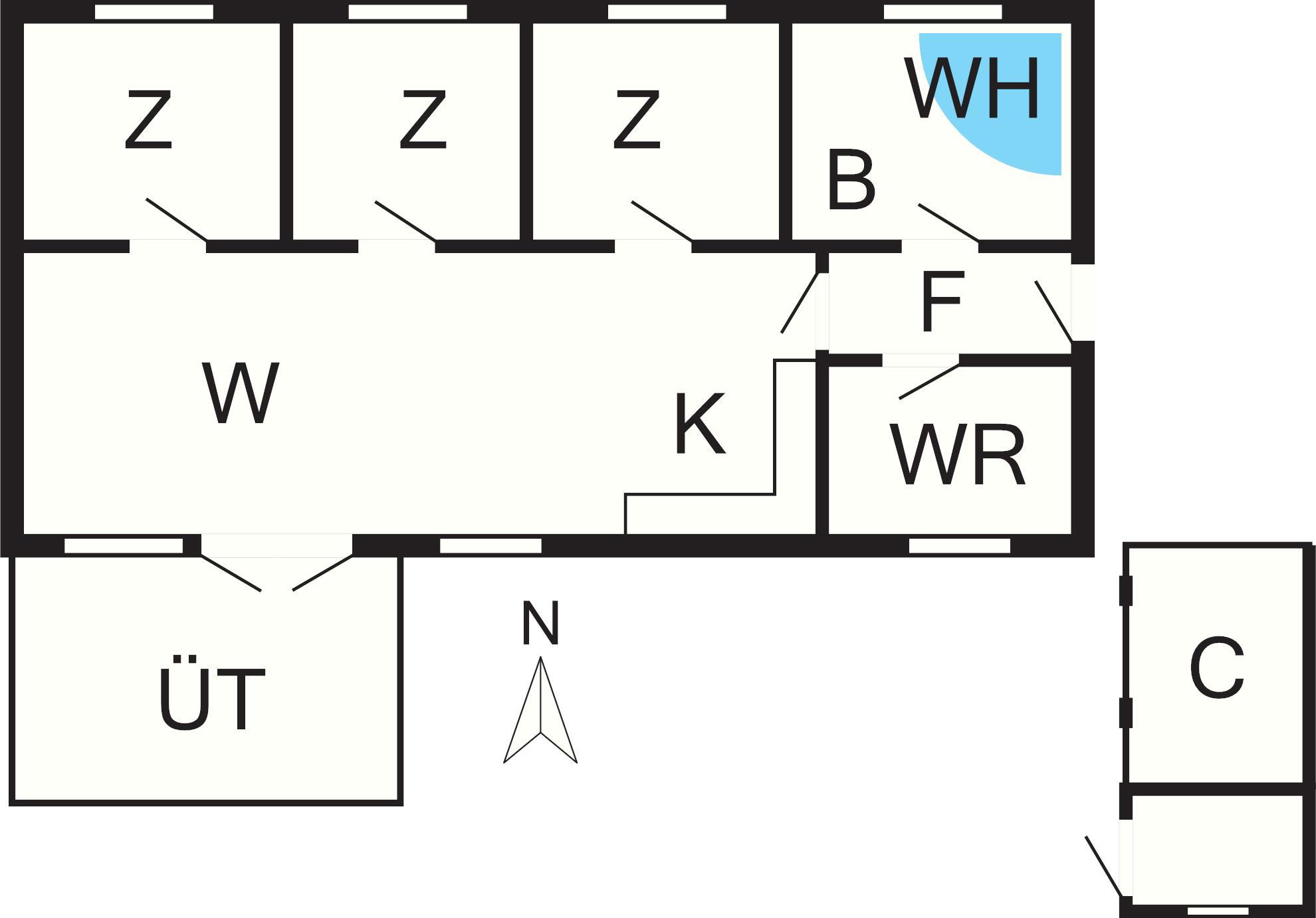 Bad: WC, Waschb., Dusche, Fußbodenheiz.