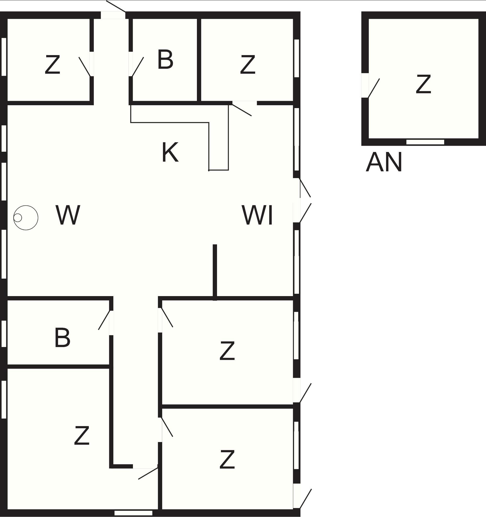 Familienfreundliches Ferienhaus in schöner Naturumgebung bei Kramnitze. Der Garten ist umzäunt und es steht hier eine Schaukel und ein Sandkasten für die Kleinsten zur Verfügung. Das Haus ist mit zwei Badezimmern mit Dusche, fünf Schlafzimmern und einem Annex eingerichtet. Vom Wohnraum mit offener Küche haben Sie Zugang zur 80 m2 großen Terrasse, auf der Sie den ganzen Tag die Sonne genießen können.