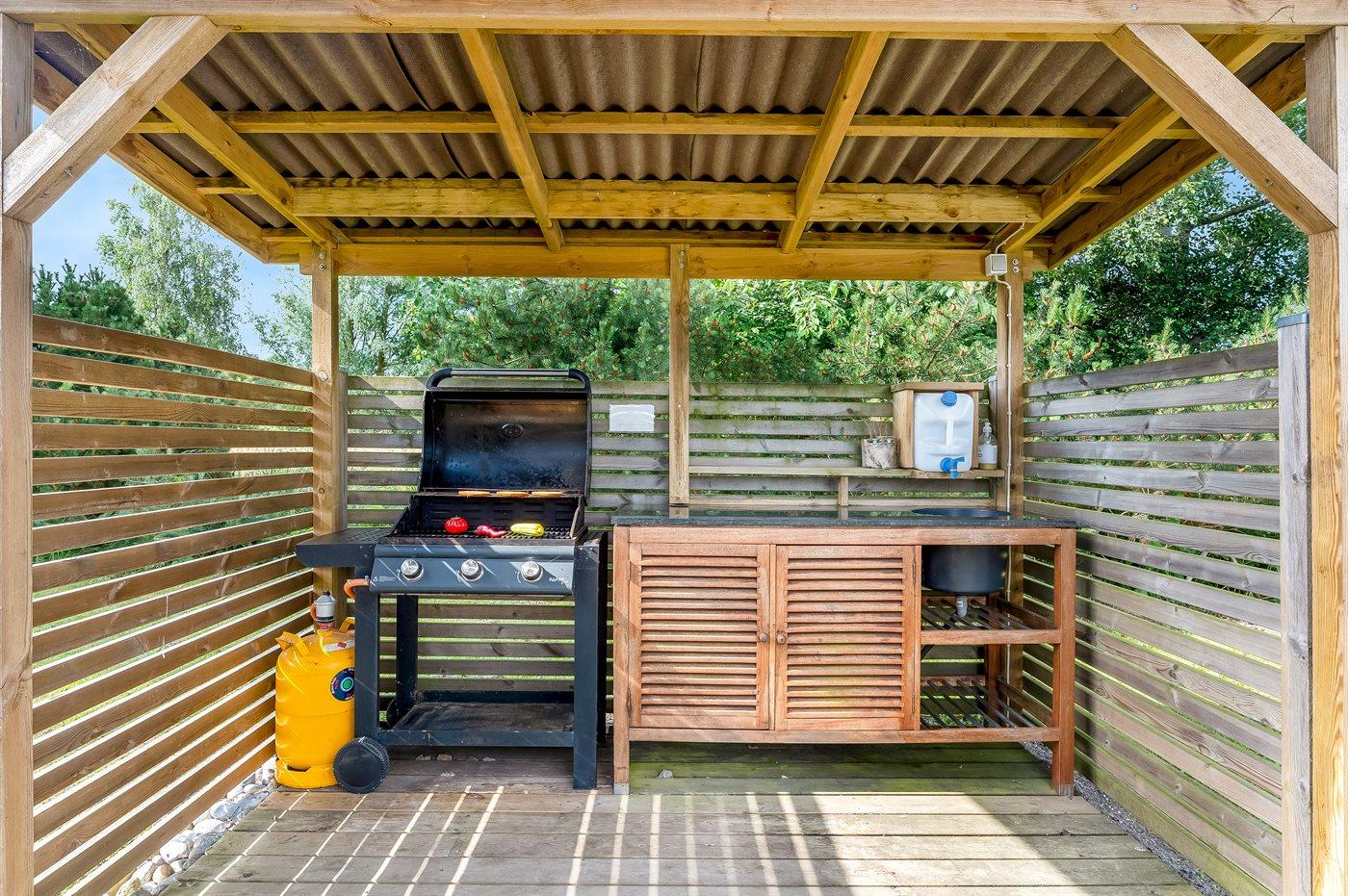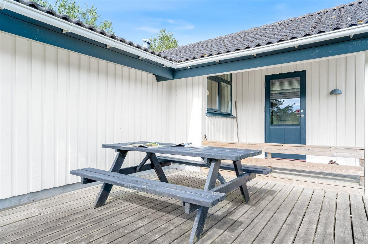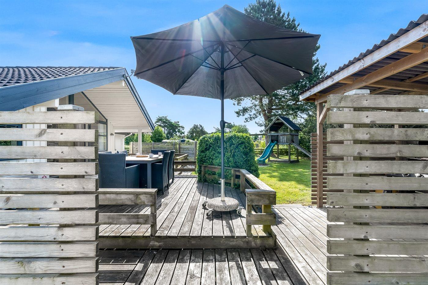 Die Ferienunterkunft liegt auf einem 900 m² großen Naturgrundstück. Die Entfernung zum Meer beträgt 800 m. Die nächste Einkaufsmöglichkeit liegt 900 m entfernt. Es steht ein 20 m² Terrassenareal zur Verfügung. Außerdem gibt es 8 m² überdachte Terrasse. Schaukel. Sandkasten. Spielturm. Rutsche. Parkplatz auf dem Grundstück.