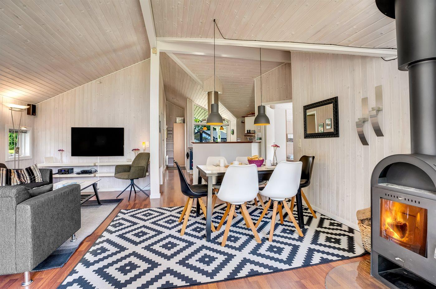 Das Ferienhaus eignet sich für 6 Personen sowie 1 Kleinkind bis zu 3 Jahren. Die Ferienunterkunft hat eine Wohnfläche von 84 m² und wurde 2001 gebaut. Haustiere dürfen nicht mitgebracht werden. Die Ferienunterkunft ist mit energiesparender Wärmepumpe ausgestattet. Die Ferienunterkunft ist mit Waschmaschine ausgestattet. Wäschetrockner. Tiefkühlmöglichkeit mit 10 Liter Nutzinhalt. Es gibt außerdem einen Kaminofen. Für die jüngsten Feriengäste ist 1 Kinderhochstuhl vorhanden.