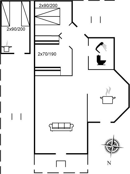 Schönes Ferienhaus aus Holz, 2004 gebaut, auf einem eingezäunten Naturgrundstück mit Bepflanzung - nur 150 m vom Meer entfernt gelegen. Zum Haus gehört eine große, offene Terrasse und 2 überdachte Terrassen mit Gartenmöbeln. Innen gibt es teils Holzwände, teils gestrichene Wände sowie Holzdecken. Holzböden, jedoch Klinkerböden im Badezimmer und im Flur. Schönes Badezimmer mit Fußbodenheizung, Duschnische und Waschmaschine. Die Küche hat ebenfalls Fußbodenheizung und ist mit u. a. Geschirrspüler, Mikrowelle und Herd mit Ceran-Feld ausgestattet. Das schöne Wohnzimmer enthält Kaminofen, , DVD-Spieler, TV und Stereoanlage mit CD-Spieler. Die Schlafplätze verteilen sich auf 1 Zimmer mit Doppelbett und 1 Zimmer mit 2 Etagenbetten. Darüber hinaus Gästehaus mit 2 Einzelbetten und kleine Teeküche. Kinderhochstuhl für die kleinen Feriengäste.