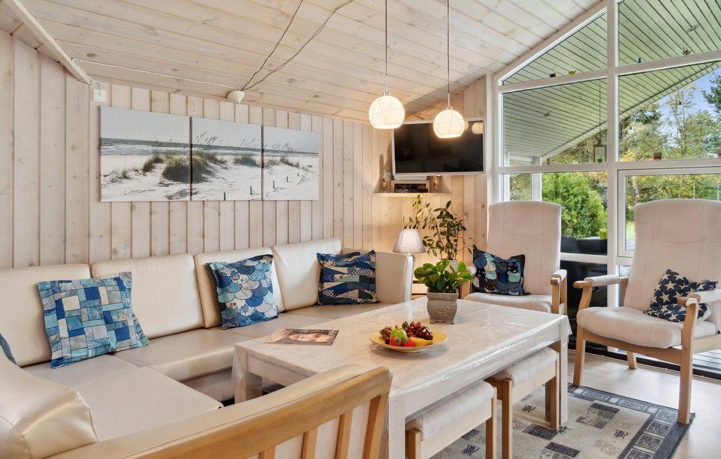 Willkommen in diesem schönen Haus, das Sie in kurzer Entfernung zum Meer in idealer Lage für wunderbare Strandtage und spannende Aktivitäten empfängt. Die wohnliche Einrichtung in hellen, freundlichen Farben mit zahlreichen Holzelementen macht es zum richtigen Ort, um mit der Familie zu entspannen. Ob beim gemeinsamen Kochen und Essen oder beim Plaudern auf dem gemütlichen Sofa, hier können Sie die gemeinsame Zeit in vollen Zügen genießen. Sorgen Sie abends mit einem Feuer im Kaminofen für eine behagliche Stimmung und genießen Sie schöne Ausblicke durch die große Fensterfront.