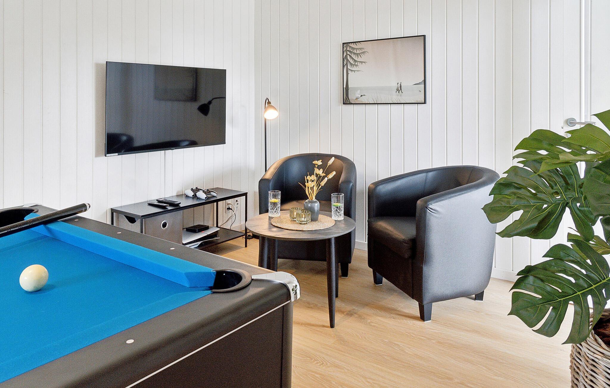 Im Innenbereich ist für Unterhaltung gesorgt. Fordern Sie sich gegenseitig im Billard, Tischtennis oder Dart heraus. Der große Garten bietet vielerlei Aktivitäten für die kleinen Urlaubsgäste, die das Trampolin, den Spielturm, die Schaukel und den Sandkasten lieben werden. Und bis zum nächstgelegenen Sandstrand ist es nicht weit. Unternehmen Sie auch Wanderungen oder Fahrradtouren durch die malerische Landschaft und atmen Sie die frische Ostseeluft ein.