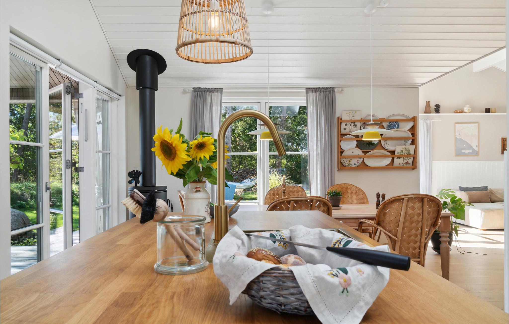 Das komfortable Haus begrüßt Sie in fantastischer Lage nur wenige Schritte vom Strand entfernt. Die hellen Räume bilden den idealen Rahmen für eine erholsame gemeinsame Zeit, moderne Möbel und geschmackvolle Farbakzente schaffen ein stilvolles Ambiente, in dem es sich herrlich entspannen lässt. Geschickt platzierte Fenster bringen die schöne Lage des Hauses voll zur Geltung, da Sie vielerorts herrliche Blicke ins Freie genießen, sei es bei den gemeinsamen Mahlzeiten oder beim Entspannen auf dem bequemen Sofa! Nach einem wunderbaren Tag am Strand oder einem Ausflug in der Natur können Sie es sich zusammen am Kaminofen gemütlich machen und noch lange beim behaglichen Knistern der Flammen zusammen sitzen, sehen Sie gemeinsam Ihre Lieblingsserie an oder spielen Sie unterhaltsame Gesellschaftsspiele.