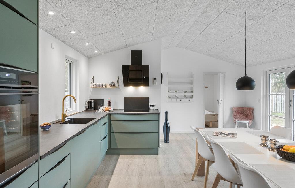 Freuen Sie sich auf eine erholsame Ferienzeit in diesem einladenden Haus. Die offene und herrliche Küche mit angrenzendem Esstisch lädt zum gemeinsamen Kochen und Verweilen ein. Am Abend können Sie von hier zum Sofa wandern und sich einen unterhaltsamen Film anschauen.