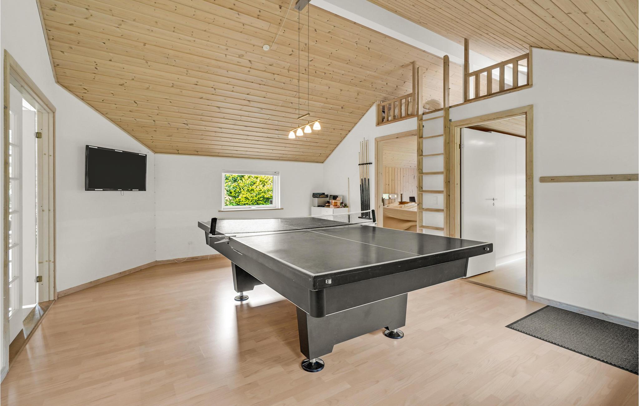 Ihr geräumiges Ferienhaus in Kramnitse bietet alles, was Sie für einen entspannten und abwechslungsreichen Urlaub benötigen. Die Nähe zum kinderfreundlichen Strand und die vielen Annehmlichkeiten machen es zu einem idealen Ort für Familien. Das Innere des Hauses besticht durch eine helle und einladende Atmosphäre. Die offene Küche, die nahtlos in das Wohnzimmer übergeht, ist ideal für gesellige Kochabende. Entspannen Sie auf den bequemen Sofas im Wohnbereich, während der Kaminofen an kühleren Tagen eine gemütliche Stimmung schafft. Highlight des Hauses ist der Wellnessbereich mit Whirlpool und Sauna, der Ihnen pure Erholung bietet. Für Unterhaltung sorgt ein Aktivitätsraum, in dem Sie sich bei Billard, Tischtennis oder Darts messen können.