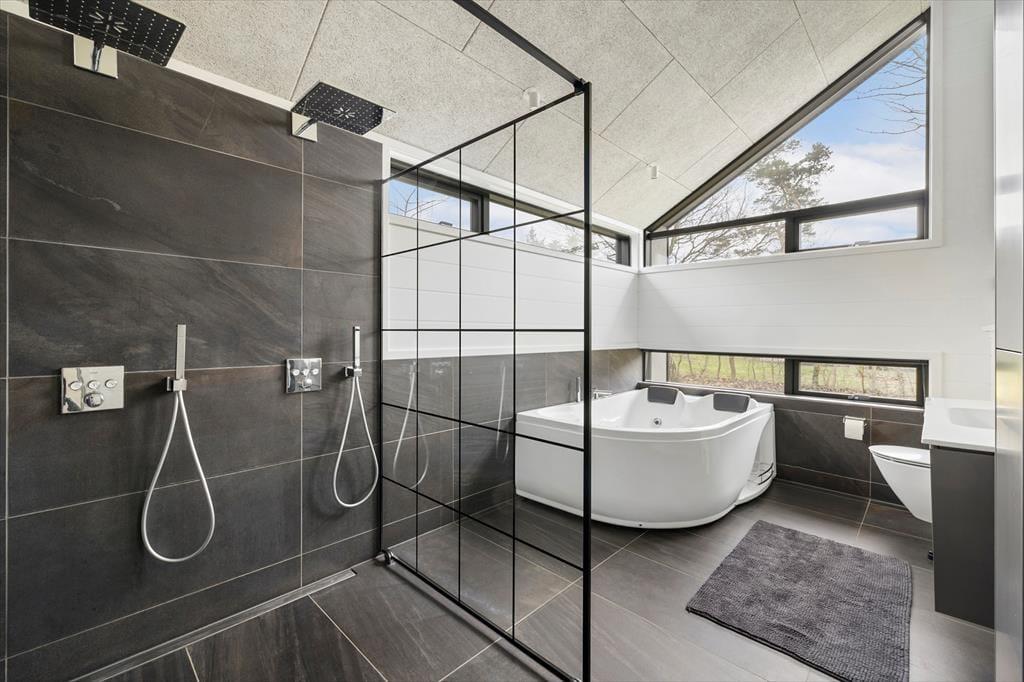 Das Haus verfügt über drei große und einladende Schlafzimmer, die nach einem langen Tag voller Erlebnisse zur Entspannung einladen. Mit zwei luxuriösen Badezimmern gibt es ausreichend Platz für alle. Eines der Badezimmer bietet eine Doppelregendusche und ein Spa – ideal, um sich selbst und seine Liebsten zu verwöhnen.