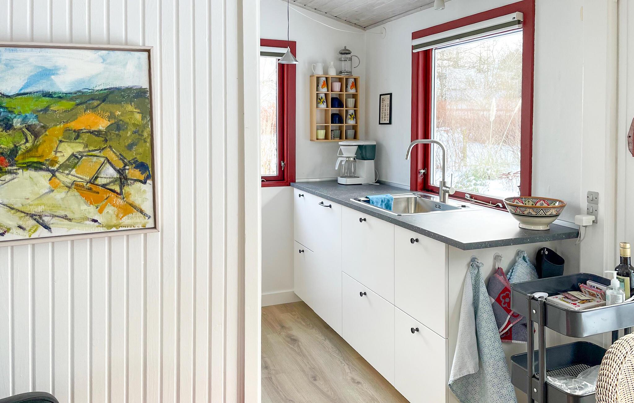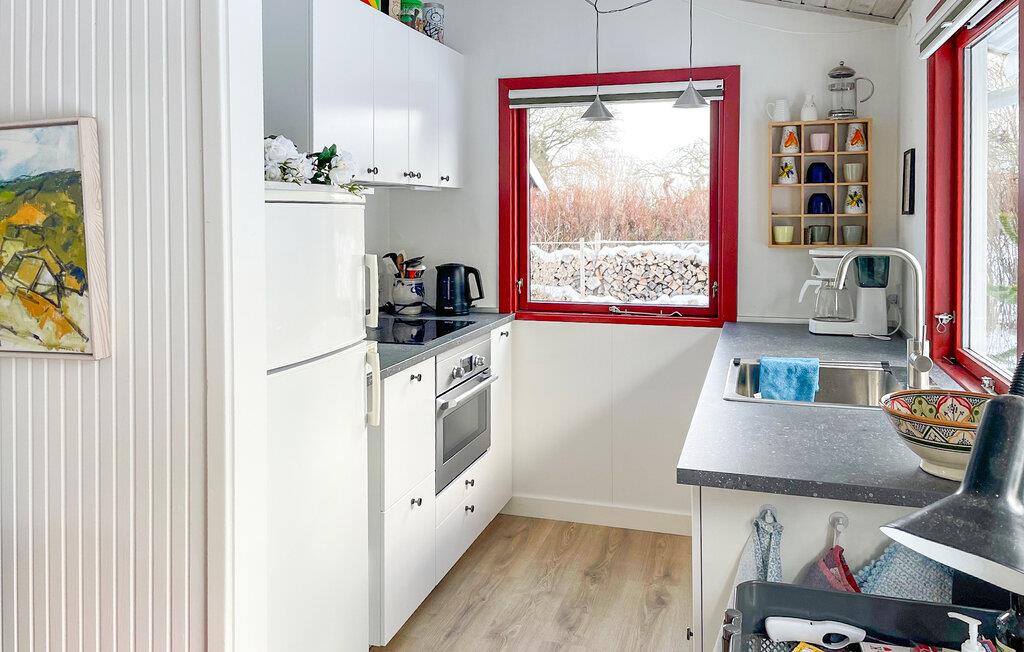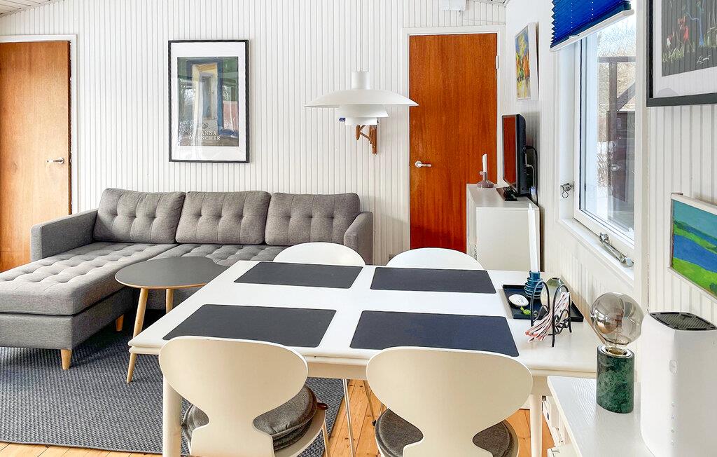 Verbringen Sie eine entspannte Auszeit in diesem Ferienhaus ganz in der Nähe des Roskilde Fjords. Hier erwartet Sie eine friedliche Atmosphäre, umgeben von Natur und Ruhe. Richten Sie sich im hellen Wohn- und Essbereich ein, der mit Holzboden, großen Fenstern und stilvoller Einrichtung ein angenehmes Wohngefühl schafft. Nehmen Sie Platz auf dem Sofa oder in den gemütlichen Sesseln und lassen Sie den Blick nach draußen schweifen. Bereiten Sie Ihre Mahlzeiten in der charmanten Küche mit Blick in den Garten zu. Genießen Sie das gemeinsame Essen am Esstisch und verbringen Sie entspannte Abende bei Spielen oder einem guten Buch.