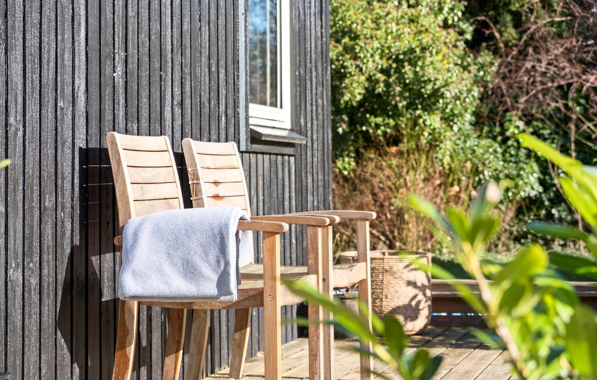 Genießen Sie auch viele Stunden im schönen Garten, wo Sie sich auf der überdachten Terrasse niederlassen oder mit Ihren Kindern in der Sonne spielen können. Nach Ihren Ausflügen an den Strand können Sie sich unter freiem Himmel unter der Außendusche abwaschen und die letzten Sonnenstunden beim Grillen genießen.